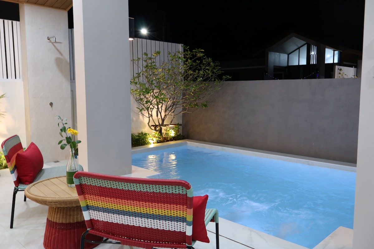 Modern Mediterranean-Style Villa with Private Pool ✨Relax in style at this bright, Mediterranean-inspired 3-bedroom, 3-bathroom villa in the heart of Ao Nang, Krabi.Perfect for families, groups of friends, or long weekends by the beach, the villa blends warm indoor spaces with a sparkling blue-lit private pool framed by elegant arches. ✦ Private 3.8 × 10 m swimming pool with kids’ pool ✦ Outdoor dining terrace & BBQ grill – great for sunset meals ✦ car park for free ✦ Fully equipped kitchen