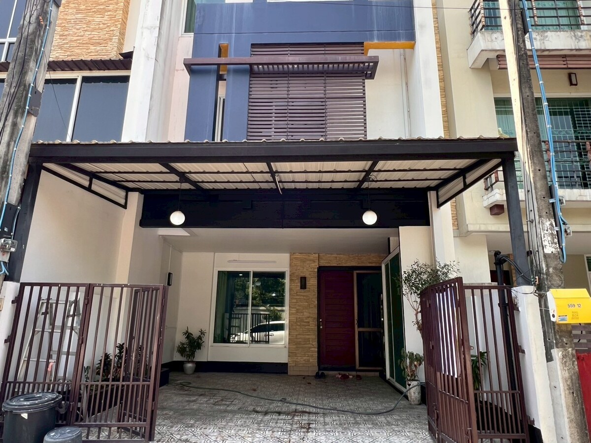 Thanapat Haus 项目内的豪华三层联排别墅 设有 3 间卧室和 4 间浴室,专为城市高品质生活而设计。空间布局合理,清晰划分生活、休息与工作区域。住宅位于市中心安静宜居的社区内,私密性高,远离城市喧嚣,环境宁静舒适。 非常适合长期居住、家庭入住以及需要居家办公(Work from Home)的商务人士,提供真正宜居的居住体验。