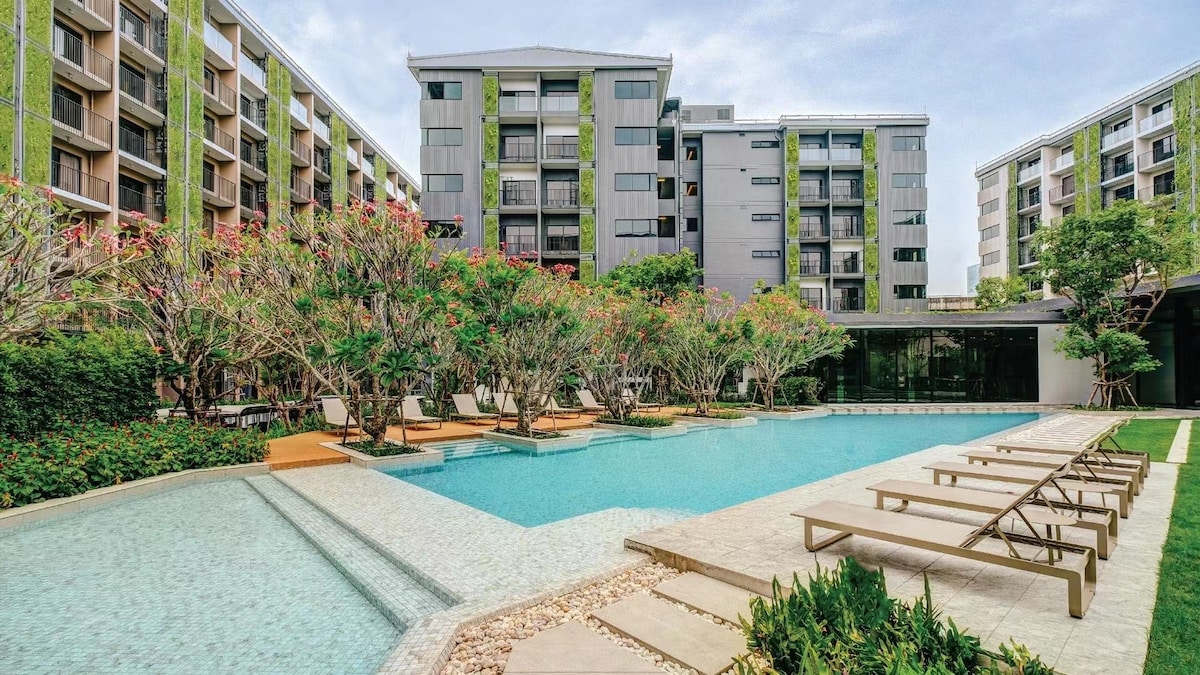 【沙吞花园式公寓】精品一居室/免费泳池/步行可达地铁站/近唐人街/摩天轮夜市/管家服务
