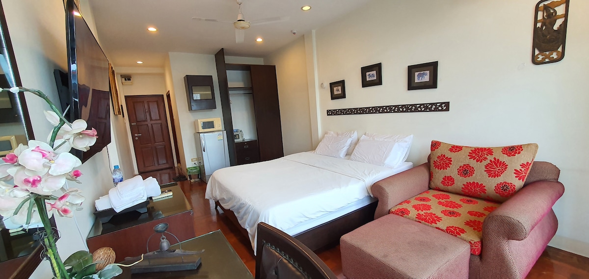 Let me start by saying thanks for looking at my apartment listing. Our 16 Studio Apartments were built in what was a former “metalwork factory” are ideal for people traveling to Bangkok for short or long stays, either as a tourist on business or a long term resident. We have created comfortable, cosy apartments that are fantastic value for money. This is our smallest studio 204 but has everything that you may need to make your stay, a pleasant one. Facilities The facilities we provide are as follows: Double bedwith linens. En - suite bathrooms Hairdryers. Irons with ironing boards. (available on request) No charge Free WiFi broadband internet 32” Flat screen digital television. Feel free to message me if you have any enquiries