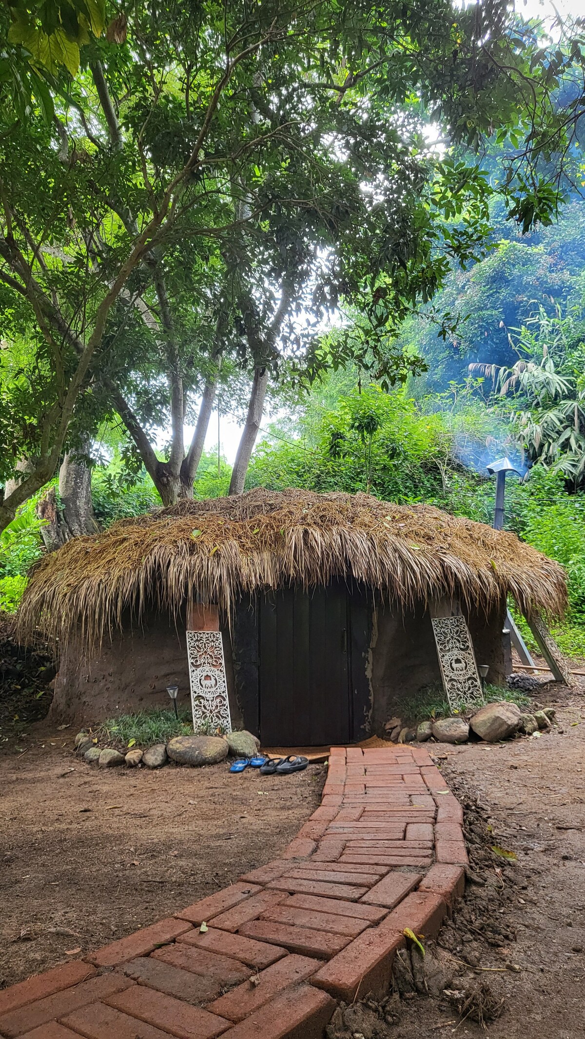 Forest Bungalow with Sauna & Massage – 30 min from Chiang Mai Escape the city and unwind in a handmade jungle bungalow. By paying 150 baht you can use the natural wood-fired herbal sauna and fresh pool for all day.. massage service, and a cozy café with smoothies, snacks, and strong Wi-Fi. Relax by the stream, work among the trees, and meet our friendly cat, dog, and visiting goats and cows. A peaceful stay in nature—designed for slow living.