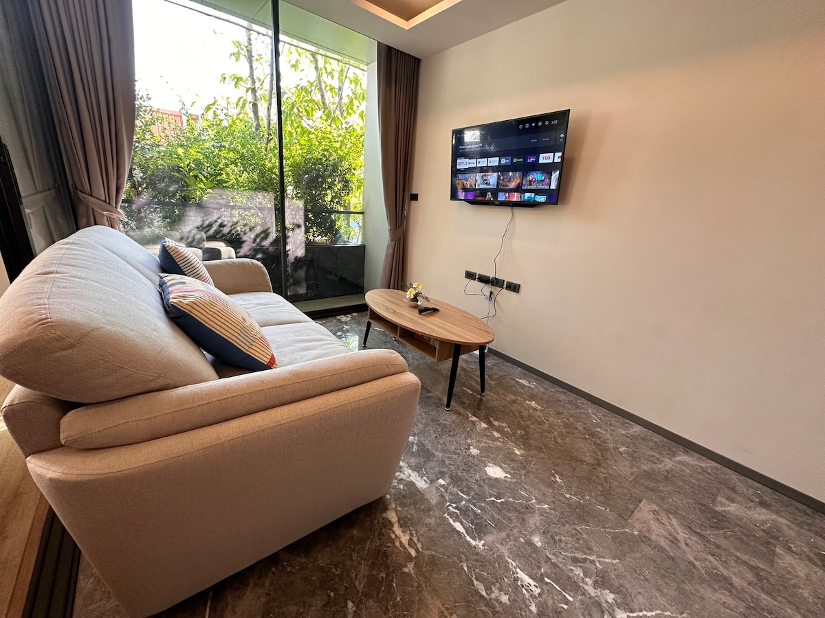 市中心1房豪华公寓/500米BTS澎蓬站/免费小巴/天际泳池/高速网络/Netflix#529