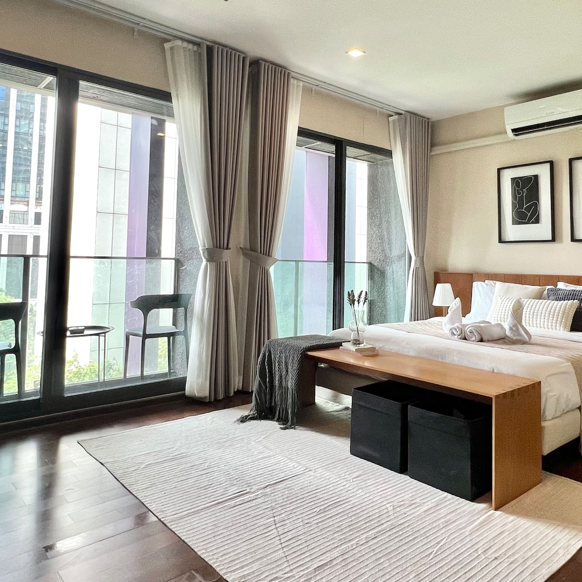 City centre 1BR has everything you need ! Just 2 min away from BTS Thonglor by walk 📍 Nearby attractions: • EmQuartier & EmSphere shopping malls • Asoke & Terminal 21 • Thonglor & Sukhumvit nightlife hotspots • Famous hangout spots: Soi 24 & 24BLVE fully equipped kitchen, luxurious bedroom, en-suite bathroom and private balcony. easy to explore the area attractions 1 BR, 35 sqm of high quality custom comfort and a 24-hour security system with CCTV. air-conditioned 1, 1 king size bed