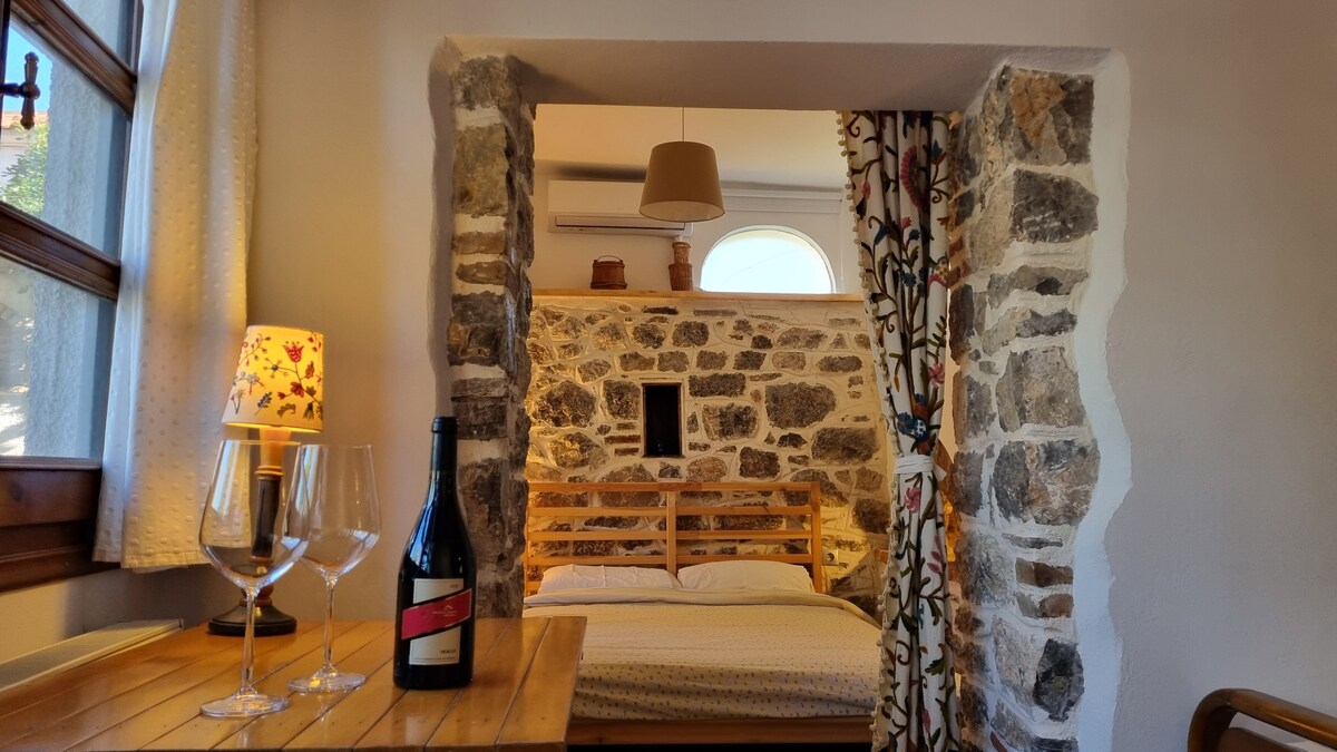 Mικρός παραδοσιακός ξενώνας κόντα στη θάλασσα. Ανήκει σε συγκρότημα κατοικιών πάνω στον παραλιακό δρόμο, βρίκεται στο ισόγειο και έχει πρόσβαση σε μεγάλη πλακόστρωτη αυλή. Ιδανικό για ήρεμες διακοπές. Η διακόσμηση είναι απλή αλλά ταυτόχρονα ζεστή. Small traditional apartment which is very close to the sea.Ιt is waterfront property that it is located in the ground floor and has access to a big yard.Ιt provides really calm and peaceful moments. The decoration is simple but in the same time cozy.
