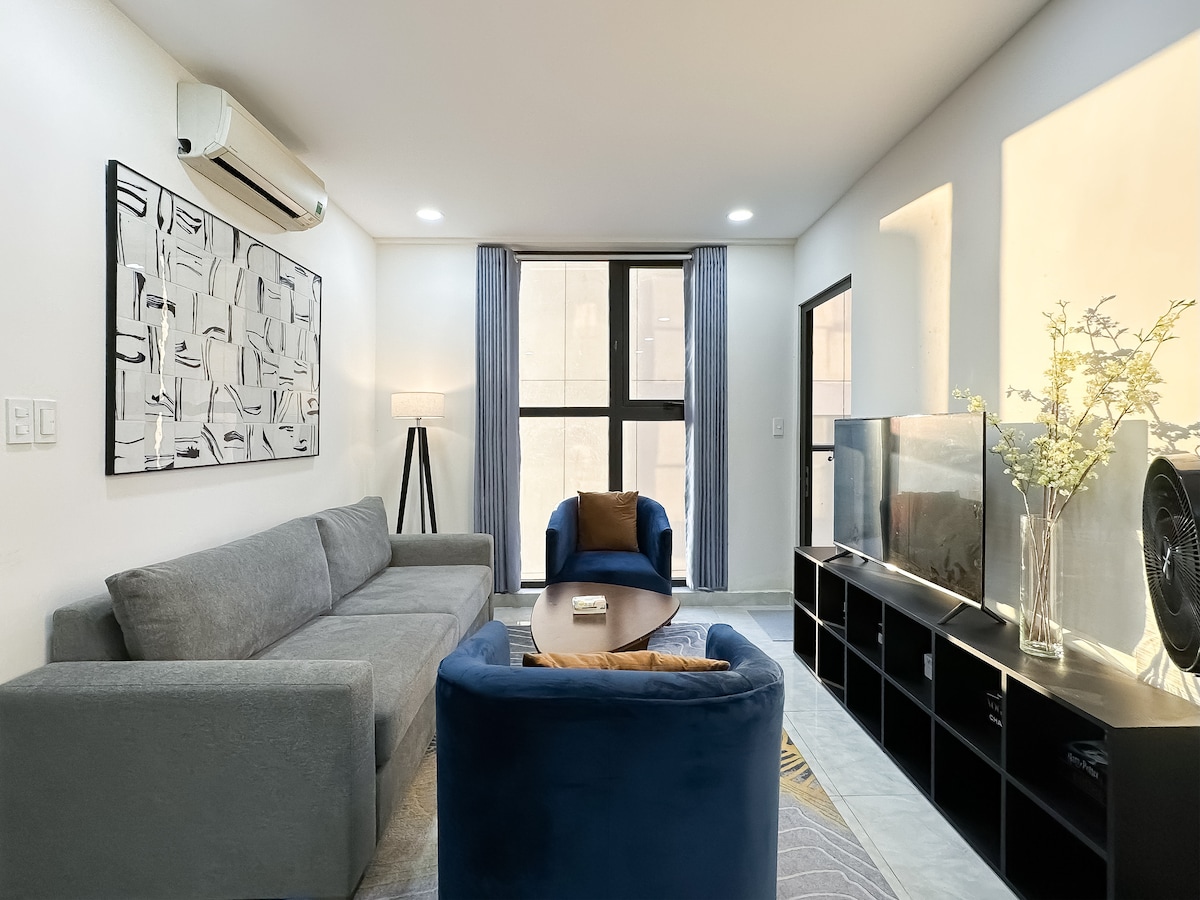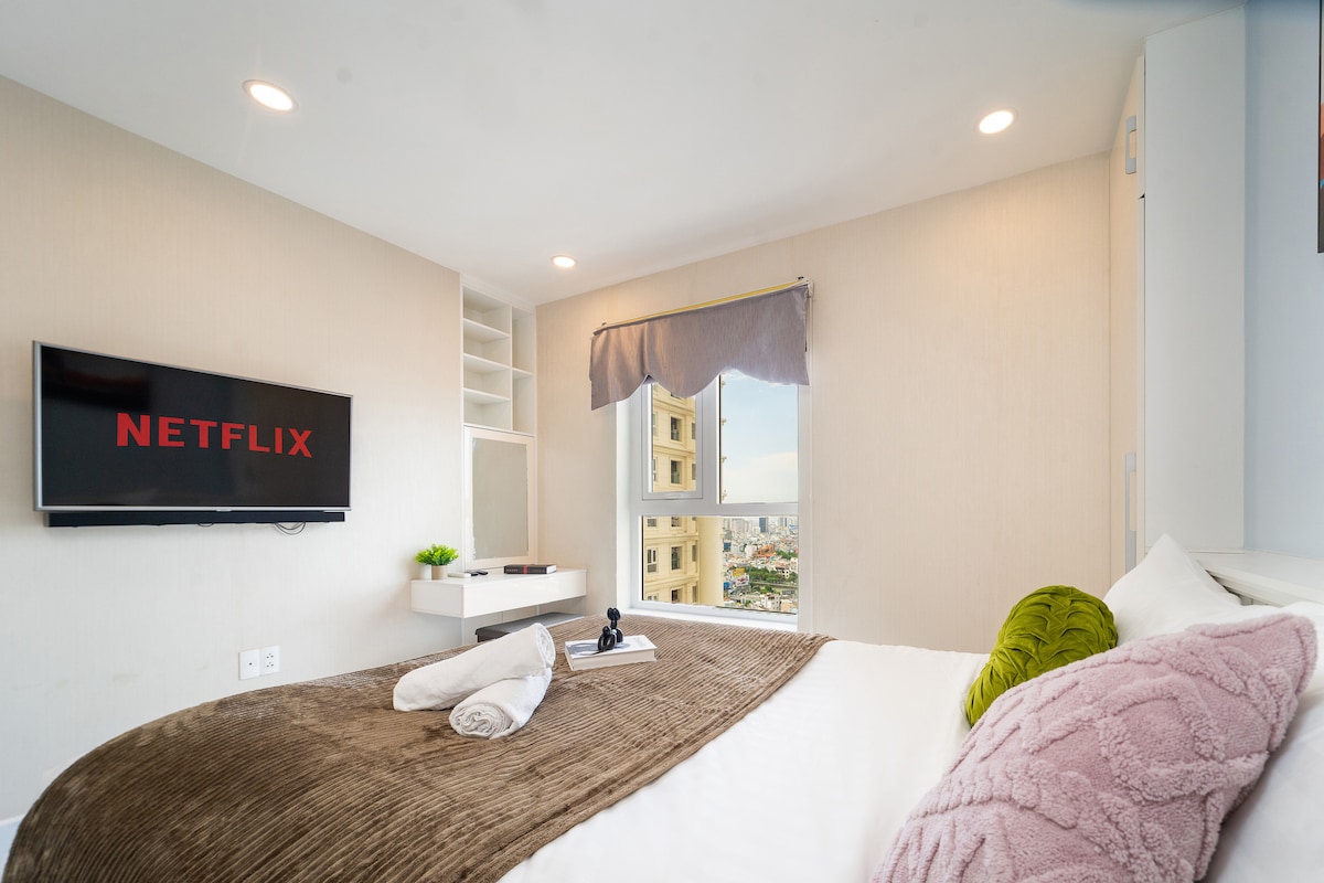 Căn hộ phù hợp với các cá nhân và gia đình kết hợp đi công tác và du lịch. Căn hộ mang lại cảm giác cho du khách như đang nghỉ tại Resorts với đầy đủ tiện nghi ngay tại trung tâm Sài Gòn: - Toàn bộ nội thất cơ bản được làm từ gỗ sồi tự nhiên - King bed 1,8 x2 mét và 1 sofa bed 1.8x2 mét cho gia đình 4 người. - 1 sofa văng để đọc sách, thư giản, view hồ bơi - 1 bàn làm việc, đàn piano, TV 55" với Netflix có sẵn - Khu bếp, bàn trà, minibar, tủ lạnh, máy giặt - Bể bơi miễn phí - Chỉ 5' ra sân bay