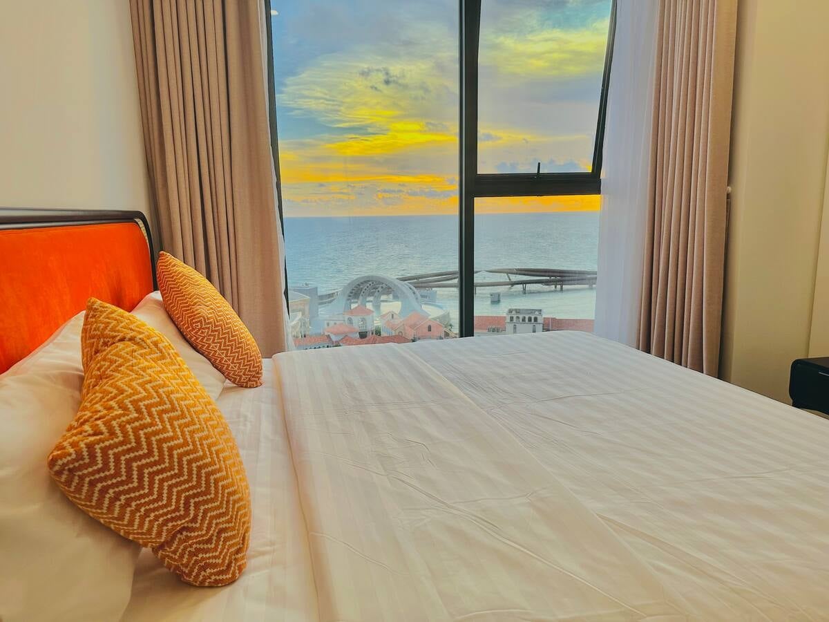 ✔ Fully Equipped – Comfy beds, equipped kitchen, fridge, WiFi, washing machine and air conditioning. Free gym and pool. ✔ Ocean & Fireworks Views – Enjoy the sea by day and dazzling fireworks at night. ✔ Prime Location – 8 minute walk to the beach, ~10 minute walk to Hòn Thơm cable car station, ~5 minute car ride to Khem Beach.