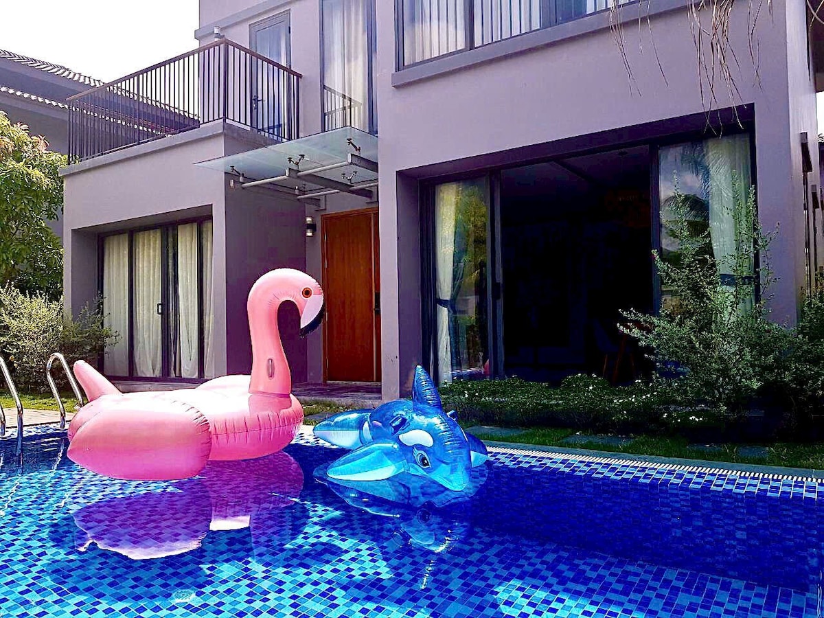 Bạn sẽ có một khoảng thời gian tuyệt vời tại nơi ở thoải mái này. villa thiết kế 3 phòng ngủ, hồ bơi riêng siêu đẹp! villa được trang bị đầy đủ dụng cụ nấu ăn! villa có nước nóng để tắm, villa có xe điện chở ra biển miễn phí! villa cách chợ đêm 50 mét villa cách bãi biển chỉ 200 mét villa cách sân bay chỉ 5km