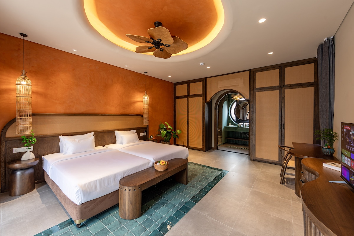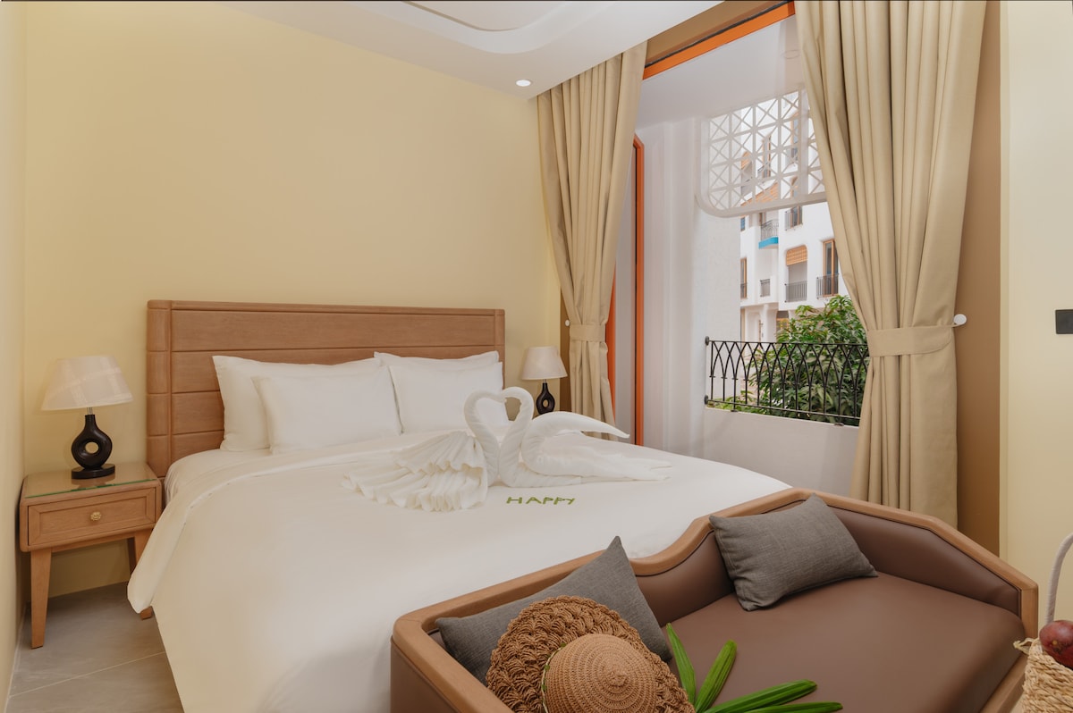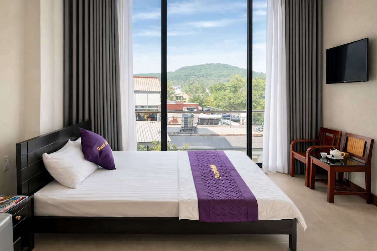 Enjoy a comfortable stay in our Quadruple Room at Varia Hotel-perfect for families or groups of up to four. The room features two queen beds, cozy modern décor, air conditioning, free Wi-Fi, a flat-screen TV, minibar, and a private bathroom stocked with fresh towels and toiletries. A large window offers lovely views of the city, adding to the relaxing atmosphere. Located just steps from Dinh Cau Beach and the vibrant night market, it's the ideal base to unwind and explore the best of Phu Quoc.