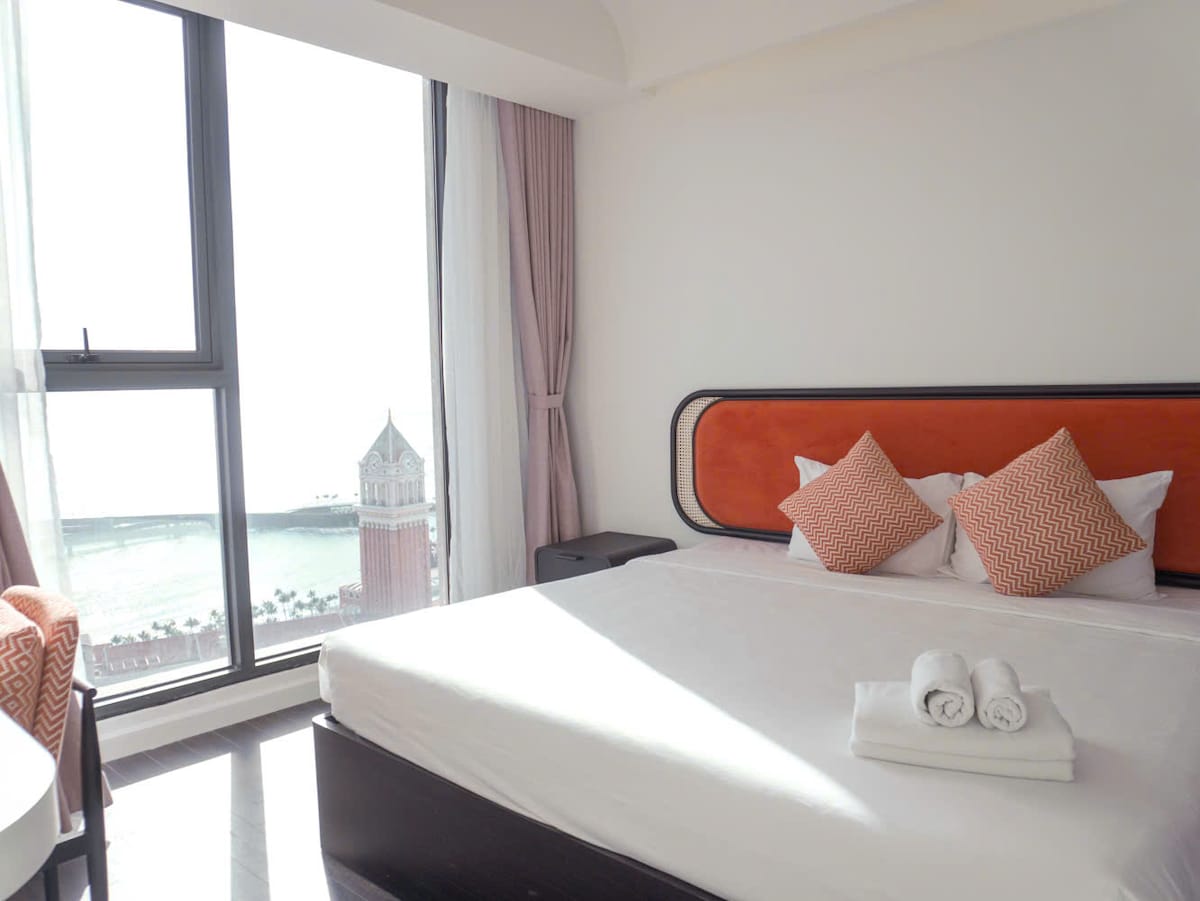 - nằm trong thị trấn hoàng hôn sôi động, gần cáp treo Hòn Thơm - một giường cỡ King (2m x 2m), có bếp, đầy đủ dụng cụ nấu ăn, máy giặt - free gym & hồ bơi tầng thượng - ban công ngắm kiss bridge, tầm nhìn ra bãi biển, ngắm hoàng hôn và pháo hoa tuyệt đẹp - 3 phút đi bộ tới bãi biển, chợ đêm vui fest, beer craft - Phòng nằm trong căn hộ dạng dual key – chỉ chung cửa chính ra vào, còn bên trong là phòng riêng biệt, có cửa & khóa riêng, đảm bảo riêng tư tuyệt đối.