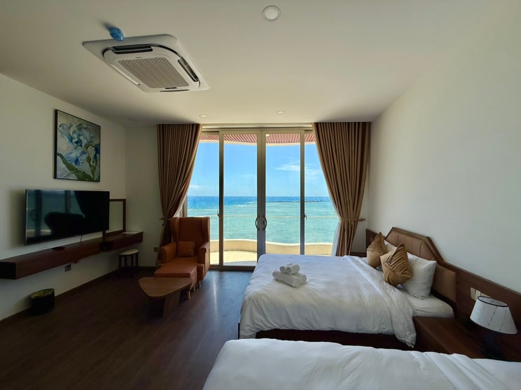 - Gồm 3 phòng ngủ sức chưa đến 10 người , 3 phòng vệ sinh, có bếp để nấu nướng , có dịch vụ giặc là , thuê xe máy , dịch vụ ngắm lặn san hô , thuê cano.