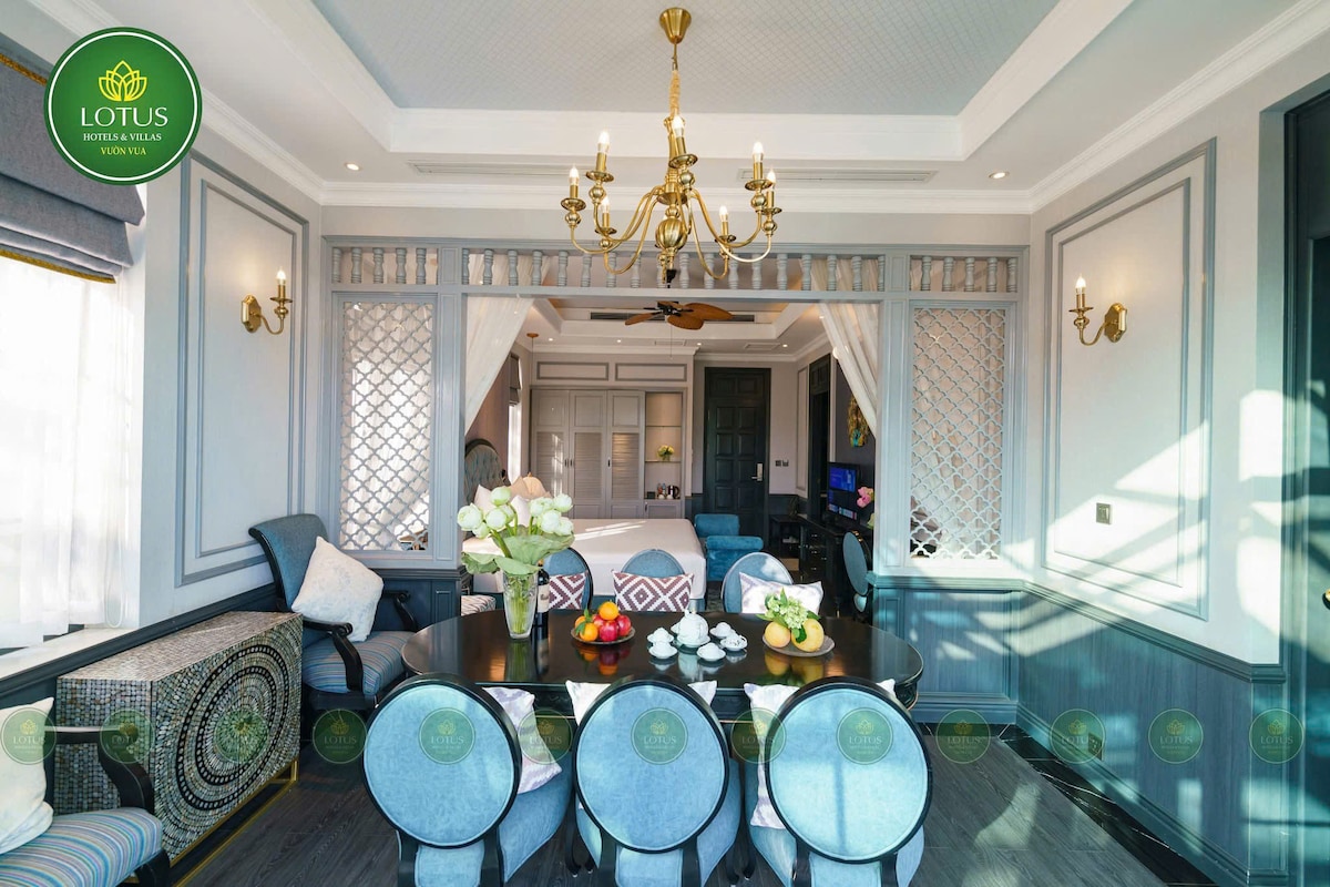 Hoàn hảo cho một kỳ nghỉ chữa lành tại biệt thự khoáng nóng Vườn Vua, Thanh Thủy, nằm ở chân núi Ba Vì, cạnh đầm sen Bạch Liên lớn nhất Miền Bắc: - 2 Phòng Ngủ, 2 WC. - Phòng ăn ngoài trời. - 2 Xe đạp. Số lượng Khách: 4 người lớn và 2 trẻ em (dưới 6 tuổi). Thêm max. 2 người lớn (600k/pax). Giá phòng gồm: ăn sáng nhẹ, ăn tối , vé vào cổng, xe điện check in/check out, khăn tắm, nước suối, xe đạp, tắm khoáng miễn phí tại các bể khoáng Phố Tây, Làng Châu Âu, Lotus Palm. Thu phí the little Onsen.