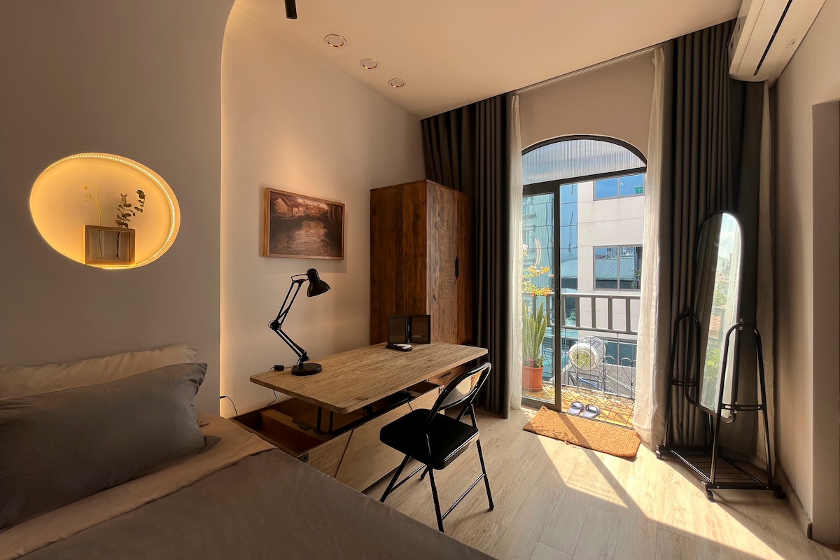 *10 minutes to Ben Thanh Market *Free One-way airport transportation to Airport for >5 nights De Macaroon Saigon, a cozy and thoughtfully designed hideaway in the center of the city. The space features a comfortable bed, refreshing air conditioning, and a clean, modern bathroom — ideal for unwinding after a day of exploration. There are 5 storey in the building, the apartment is on the top floor. Entered through Banan the patisserie shop on the first floor and make your way up!