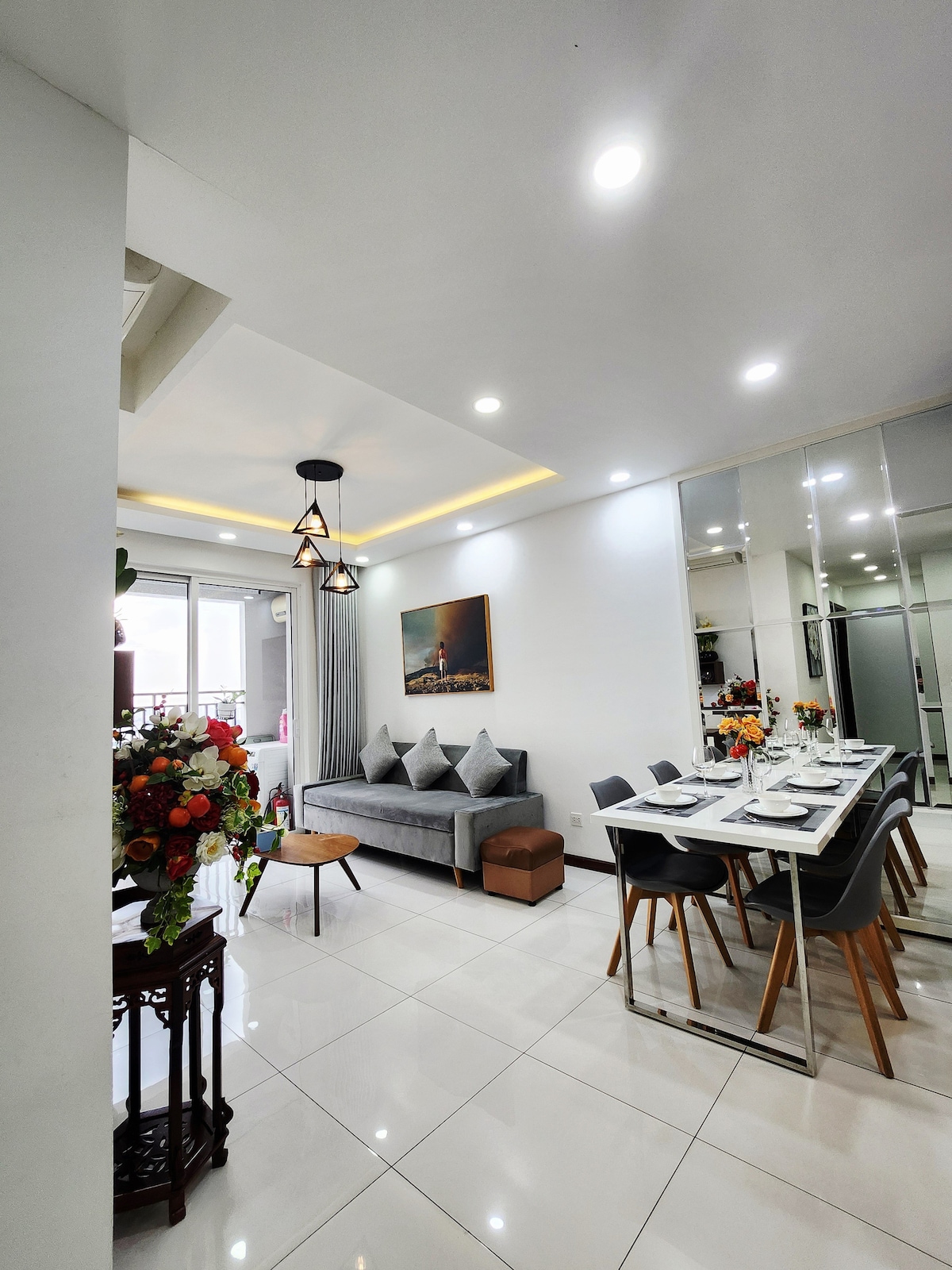 Our amazing 1 bedroom apartment is located in the heart of the city! The expansive space has 3.8 meter high ceilings, two large balconies, and lots of sunlight. Amenities include: -King bed & big dining table -Blazing fast internet (200+Mbps) -Fully equipped kitchen -Unlimited drinking water -Smart TV + Netflix -Bluetooth speaker -Rain shower and toilet bidet -Free coffee bar We're a short walk to Nguyen Hue so you'll be close to the best restaurants, cafes, shopping and nightlife in Saigon!