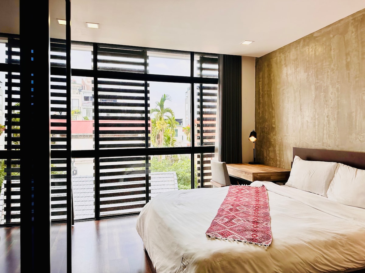 Fancy catching a Westlake sunset from your rooftop yard? Or waking up to a panoramic lake view in a cozy Indochine-industrial loft? Tucked on the 6th floor, this spacious 1BR spot blends Hanoi charm with modern chill. You're in the Westlake area—where locals meet expats, cafés are everywhere, and the city center’s just 10 mins away. If that sounds like your vibe, welcome to our signature skyline apartment at The Good Vibes - the gem of the building!