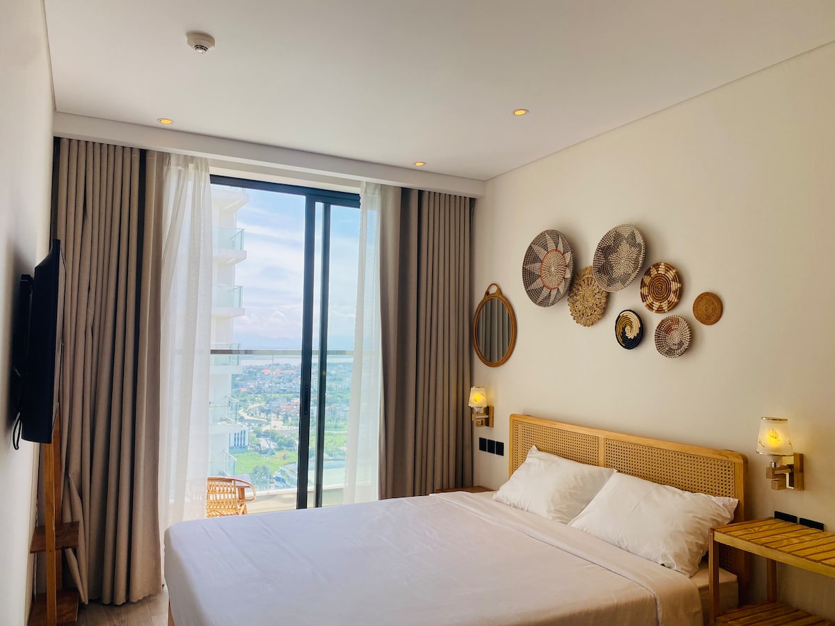 Enjoy stunning sea views from the 12th floor! Our spacious 40m² condotel is larger than most units in the building (typically 22–32m²) and offers a breathtaking panorama of Tuy Hòa beach. It’s a bright, cozy space with everything you need for a relaxing stay. Located just walking distance from the beach, you’ll also have access (for an extra fee) to 2 infinity pools (in the 6th floor and in rooftop), gym, spa, and on-site dining, depending on their operating hours.