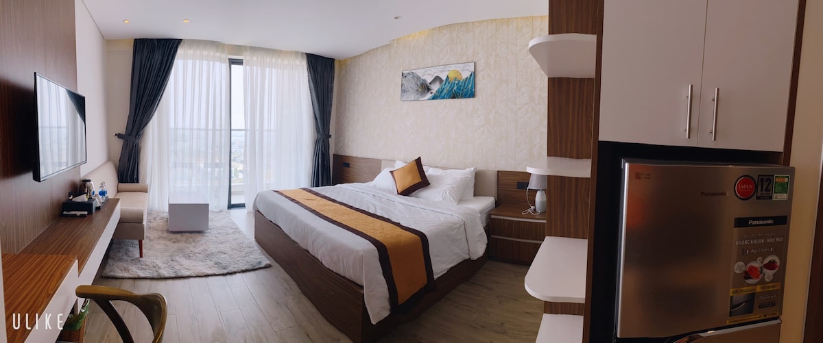 Căn hộ nằm trong tổ hợp khách sạn 5 sao Apec Mandala Phú Yên - được khai trương năm 2021, là khách sạn Codotel tiêu chuẩn 5 sao đầu tiên tại Tp.Tuy Hòa. Tòa Apec Madala nằm ở vị trí trung tâm của Thành phố cách bãi tắm 700m, nằm sát với khu mua sắm, TTTM Vincom, tạo điều kiện thuận lợi cho du khách đi tăm biển, vui chơi và mua sắm. Căn hộ được trang bị đầy đủ tiện nghi với ban công dài hướng biển và vườn hoa thành phố, tạo cho du khách cảm giác An bình, thư giãn khi sống nơi đây.