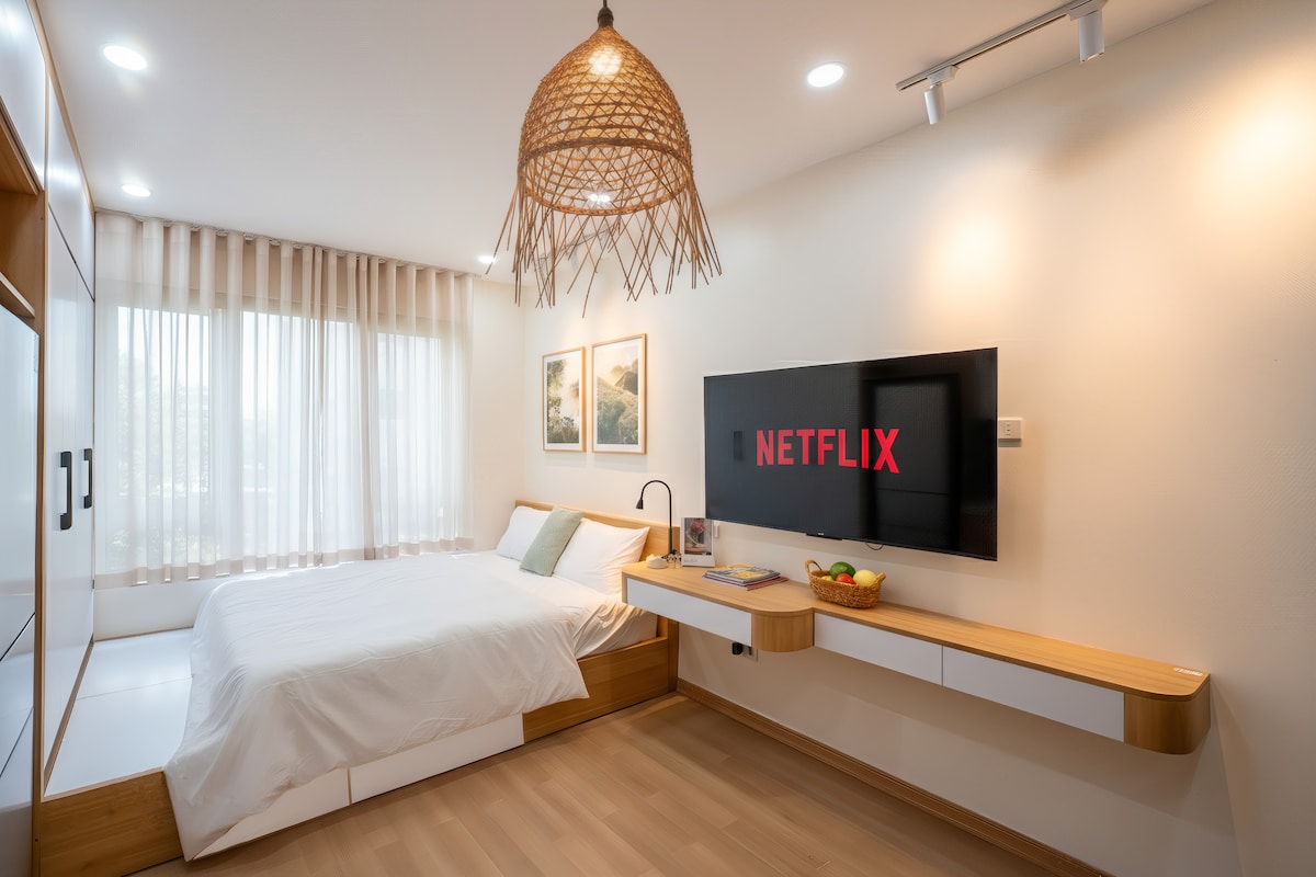 Relax in a peaceful apartment with stunning West Lake views on tranquil Yen Phu Peninsula. The spacious living room has a large, comfortable sofa for lounging or sleeping. A functional kitchenette with a washer/dryer ensures convenience. The bedroom includes AC, a flat-screen TV, and a workspace ideal for work or relaxation. Set in a low-traffic area, it offers a peaceful escape from the city buzz. The apartment perfectly combines the beauty of the lake with proximity to Hanoi’s dynamic streets.