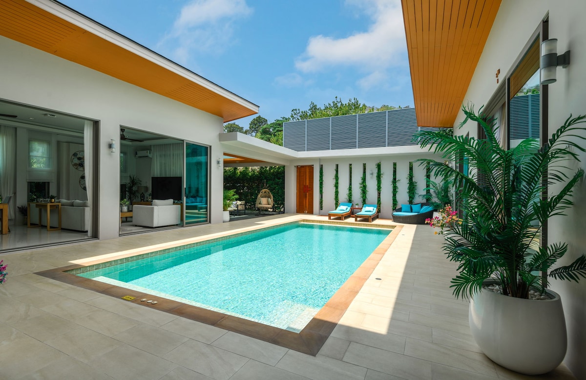 Experience ultimate luxury at this contemporary European-style villa just a 5-minute walk from Surin Beach, one of Phuket's best beaches. This elegant 3-bed, 3.5-bath home offers a generous 300 sqm of beautifully appointed living space. Bathed in natural light, the villa is surrounded by lush greenery and meticulously landscaped gardens, creating a serene and private retreat. Enjoy a breathtaking 33x8m pool, set amidst a stunning Oriental garden. Perfect for a luxurious and tranquil lifestyle.