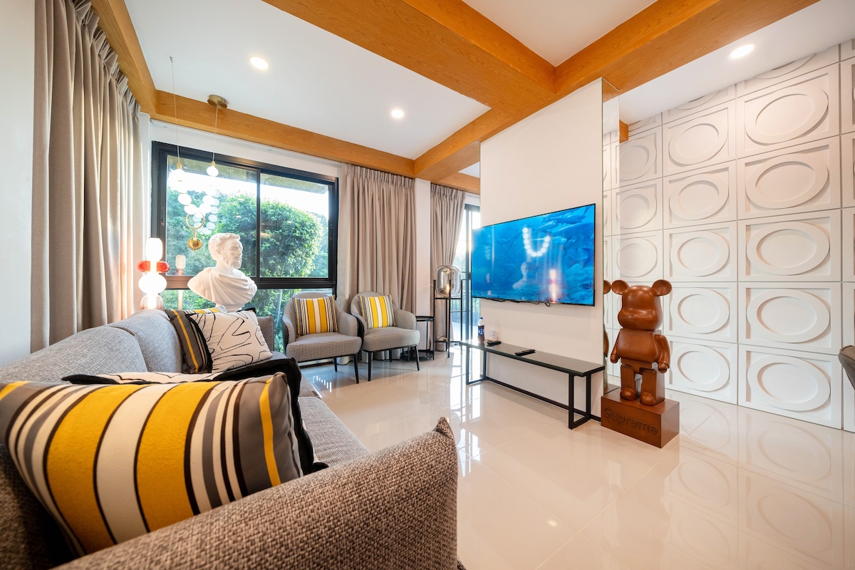 绝佳海上日落观景屋顶花园泳池&带厨房浴缸阳台一室一厅温馨房间+24小时保安