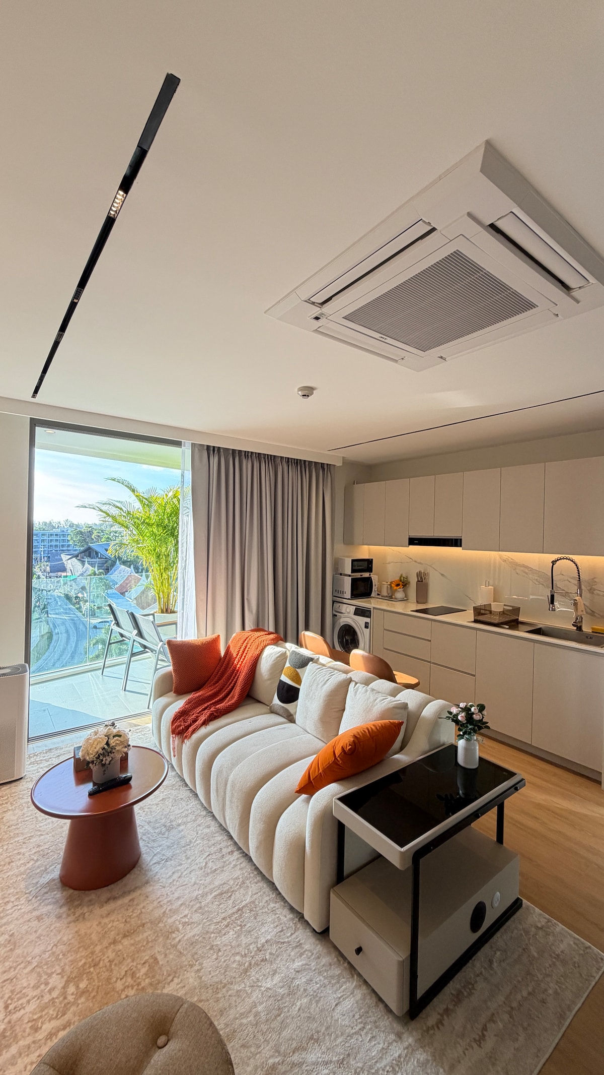 A spacious, bright 45 sq m one-bedroom apartment on the 5th floor overlooking the pool and courtyard 🏝️ in the brand new The Title Legendary. One step away from Bangtao Beach 🏖. ✅All-inclusive: fixed price, utilities and fees included! ✅Modern appliances: washing machine, coffee machine, air fryer, fully equipped kitchen. ✅On-site amenities: multiple swimming pools, a gym (with separate boxing and yoga rooms), children's play area, golf simulator, arcade, and much more.