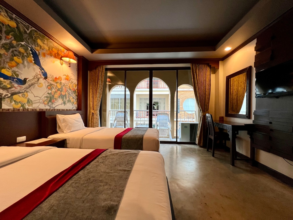 Добро пожаловать в наш уютный номер с двумя раздельными мягкими постелями и балконом, идеально подходящий для путешествующих семей или одиноких путешественников. Комната оформлена в индивидуальном стиле с визуальным акцентом* Мы, в отеле "Grand Orlov", стремимся создать для вас уютную и гостеприимную атмосферу и предоставляем лучший сервис, чтобы вы чувствовали себя как дома, даже вдали от дома. Забронируйте этот номер и насладитесь комфортным и незабываемым отдыхом на Пхукете!
