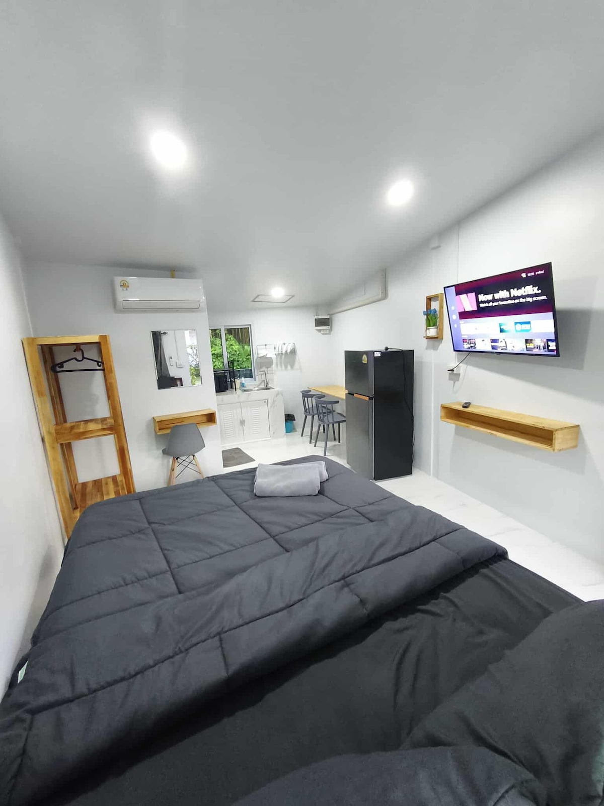Этот светлый дом-студия — идеальное место для отдыха у моря. В пешей доступности от пляжа Банг Тао, он предлагает просторную и функциональную планировку. Планировка предусматривает уютную зону отдыха с диваном и телевизором, обеденным столиком на двоих. Полностью оборудованная кухня с техникой, включая холодильник и микроволновку. Стильный интерьер с элементами декора создаёт подходящую атмосферу. Wi-Fi, кондиционер и всё необходимое для комфортного проживания уже подготовлено для вас!