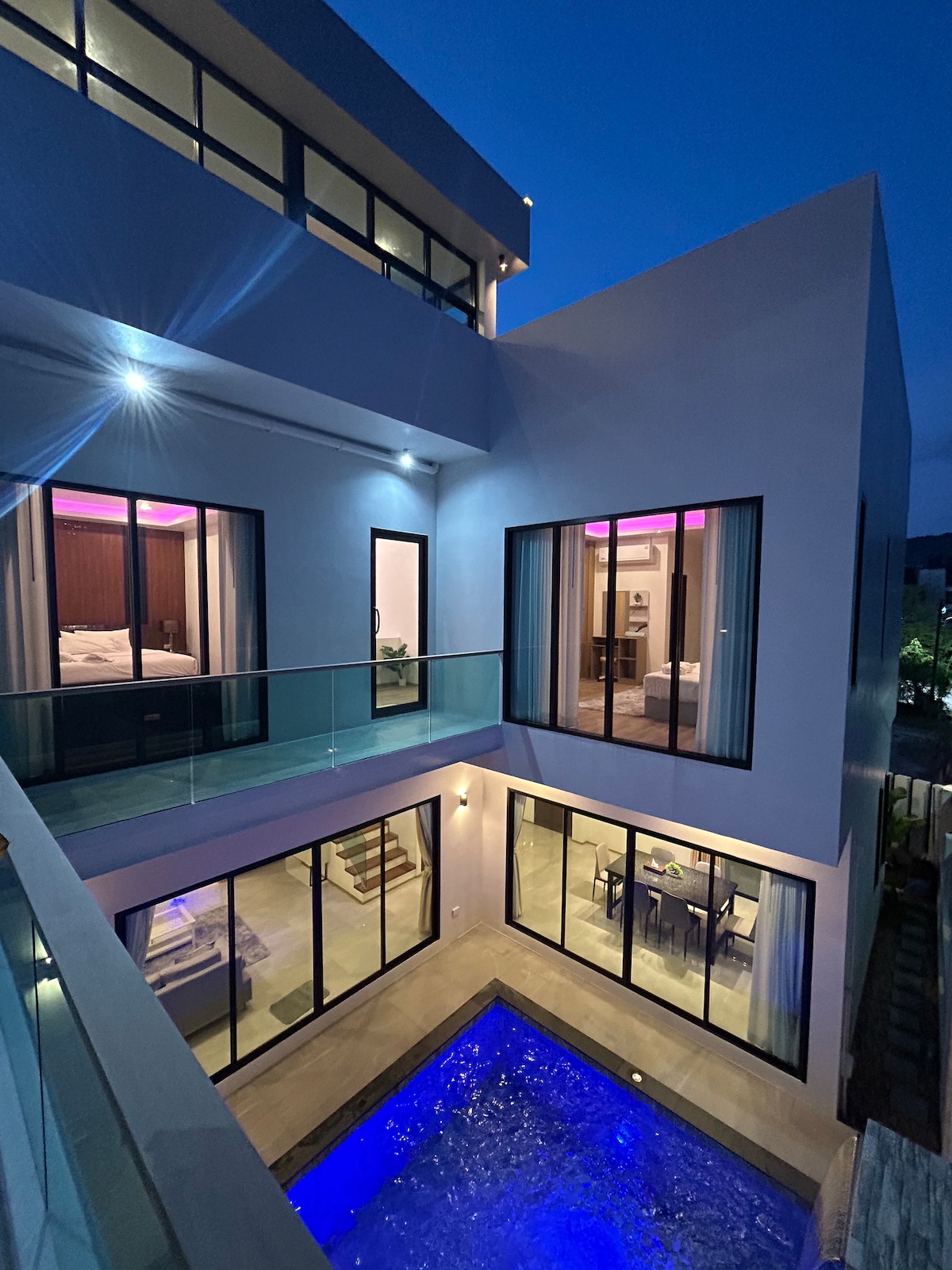 Brand New 2-storey townhouse designed for comfortable living with 3 bedrooms and 4 bathrooms. Features an open-plan living room, dining, and fully equipped kitchen area with high ceilings and floor-to-ceiling glass doors connecting directly to the private swimming pool. Covered car parking for 2 cars, laundry and storage room. Located with-walking distance to Rawai beach, with many shops, supermarkets, restaurants, massage, bars and just 5 minutes drive to Naiharn and Yanui beaches