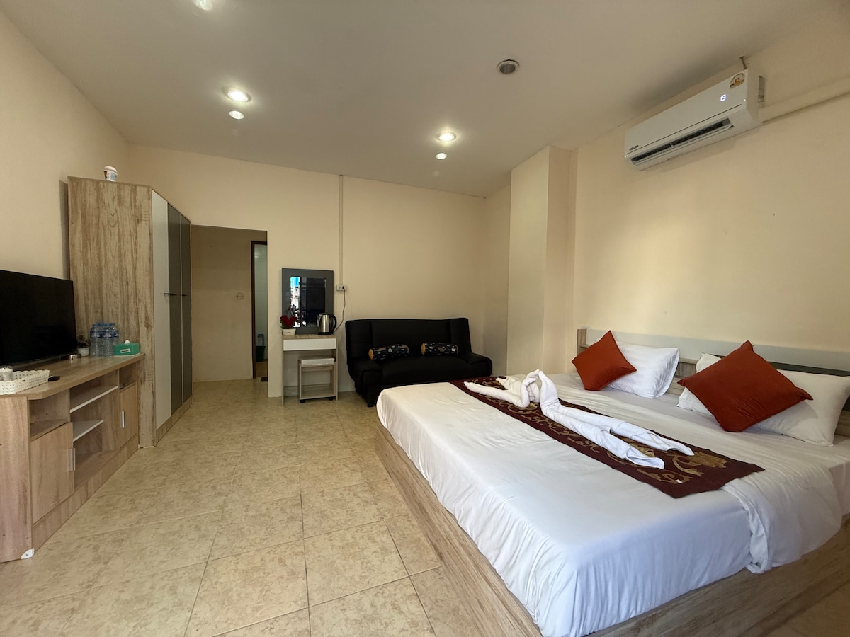 Situated within walking distance to Kamala Beach and directly on the beach road, we offer a 2-bedroom, 2-bathroom upper unit. The property has all the necessary amenities, including a washing machine! It features a full kitchen, a dining area, a sofa, and an outdoor seating space. Restaurants, supermarkets, and other essential services are all accessible on foot, eliminating the need for transportation during your stay. High-speed WIFI, no additional fees for water and electricity!.