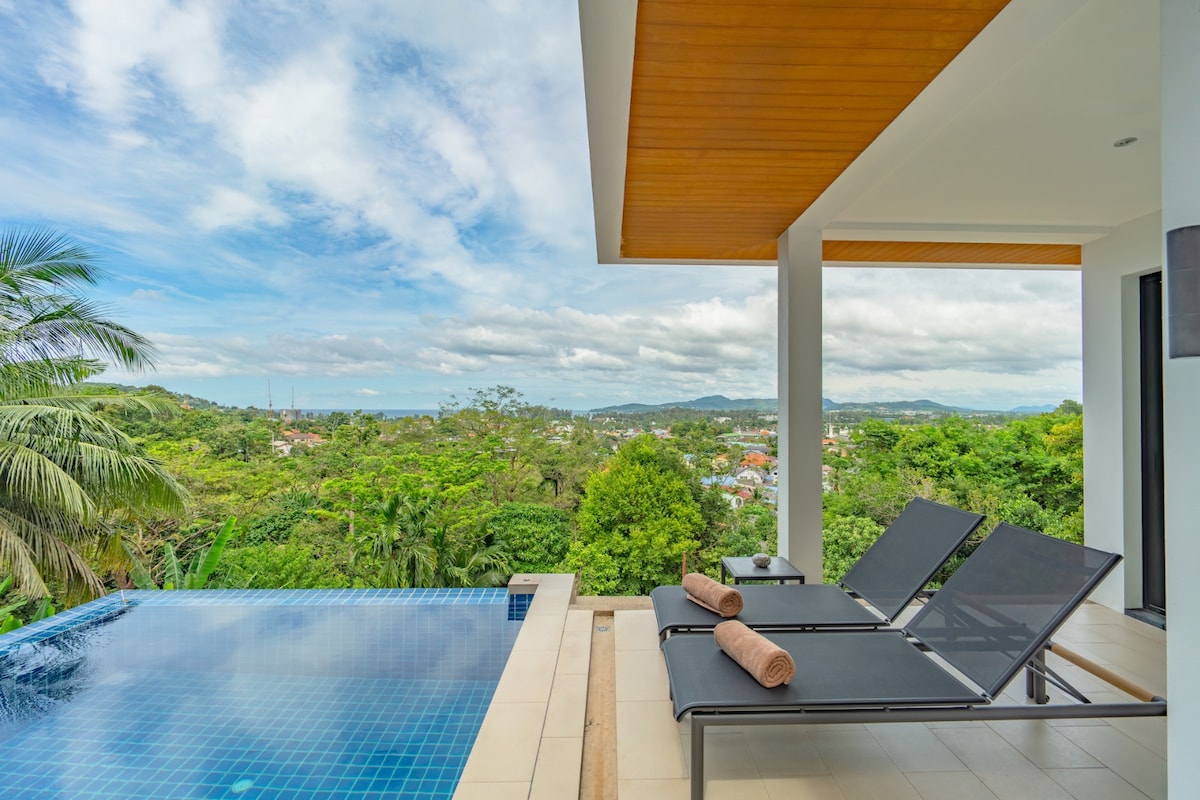 Experience the epitome of luxury living at Villa Aurora, a stunning 5-bedroom villa in Bangtao Beach, Phuket. This opulent retreat offers breathtaking panoramic ocean views. Indulge in the infinity pool seamlessly blending with the horizon, or relax in the spacious garden. With 6 bathrooms, a fully-equipped kitchen, on-site gym, and dedicated maid service, every need is catered to. Accommodating up to 10 guests. Enjoy convenient parking and easy access to Bangtao Beach's pristine shores.
