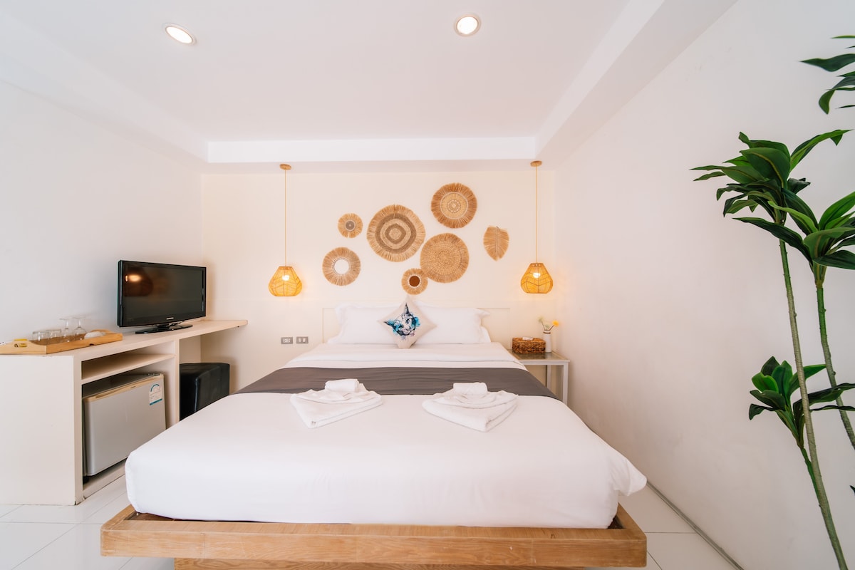 SJ Beach House Patong is a mini hotel in the heart of Patong. You can walk to the beach of Patong within 2 minutes. Breakfast is included in the price. Distance: - 150 meters from Patong Beach - 600 meters from Jungceylon center - 850 meters from Bangla Road - 800 meters from Bangla Boxing Stadium This room is a Deluxe City View with King size bed 183 x 203 cm. The room is 18m2