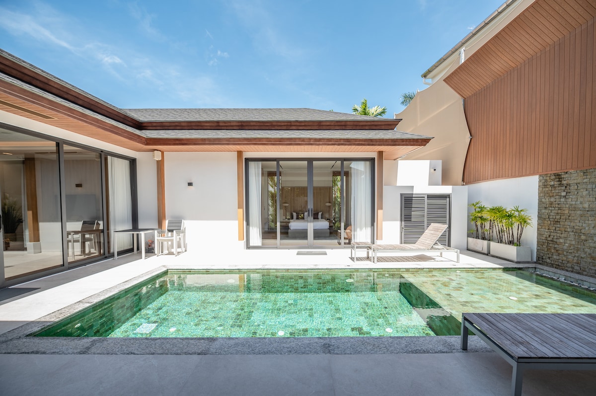 Charming one-bedroom villa with elaborate traditional Thai decor. Private terrace overlooking a lake, king size bed, pool, tropical gardens and kitchen - ideal for a quiet getaway. Free parking and wifi. Air-conditioned. Self check-in and airport pick-up available. - 8 mins walk to supermarket, 24/7 convenience store, fresh market, restaurants, massage parlour, gym and tour agency - 13 mins drive to Layan Beach, 18 mins to Surin Beach - 18 mins drive to airport *1- to 4-bedroom villas available*