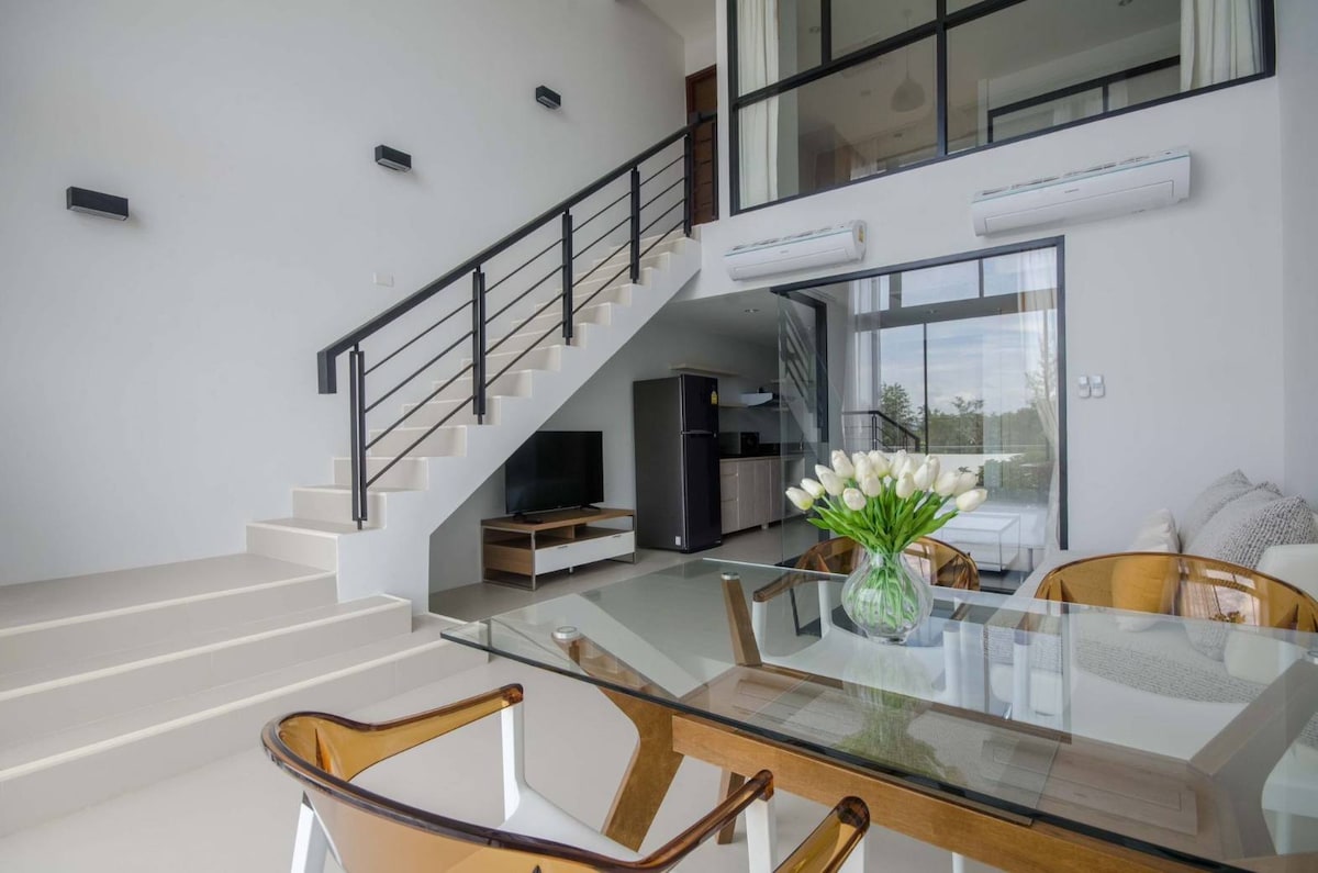 Modern 1-bedroom loft condo located beside Boat Avenue and moments from Laguna Phuket. This 50 sqm home offers a bedroom and bathroom downstairs, with an upper-level lounge, work desk, and balcony. Fully furnished with kitchen, Wi-Fi, and washer. Bang Tao Beach, Laguna Golf, shops, and cafés are only minutes away, ideal for business or leisure stays.