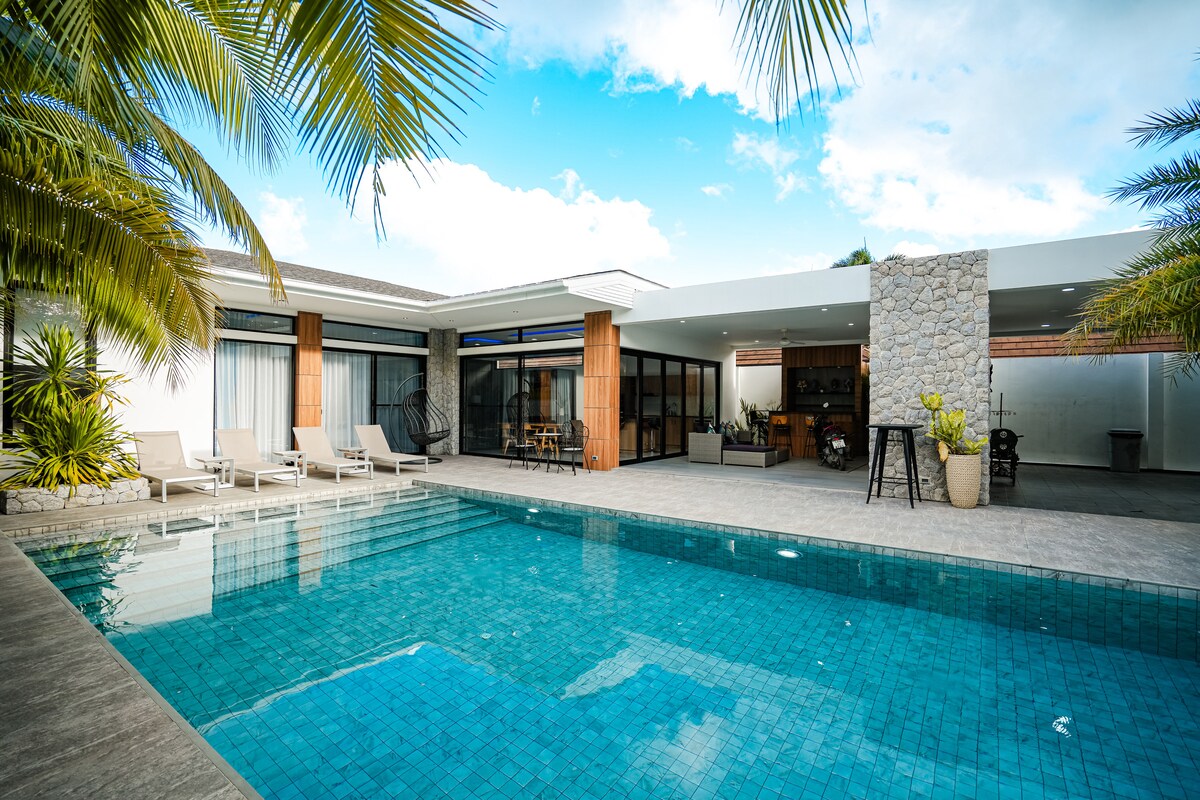 Escape to your dream retreat in our luxurious 4-bdr villa, featuring a stunning saltwater swimming pool, complemented by a beach area perfect for children. Located just 5 minutes from Rawai and Nai Harn Beaches, this modern villa is nestled in a private and quiet residence close to shops, where you can find restaurants, supermarkets, and massages. Ideal for families or friends seeking relaxation, it offers a seamless blend of luxury and convenience. Your ideal starts here!
