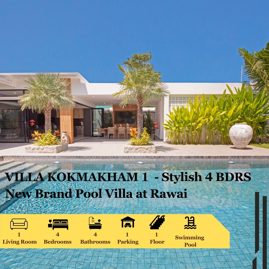 平均评分 5 分(满分 5 分),共 4 条评价位于拉威(Rawai)的时尚4卧新品牌泳池别墅