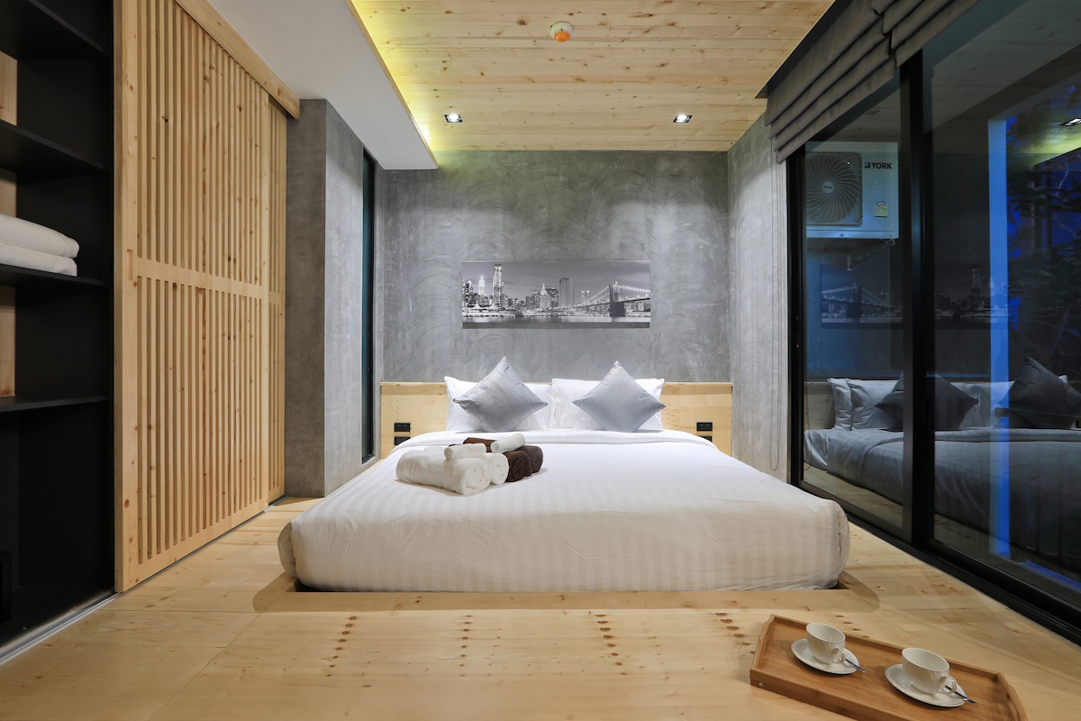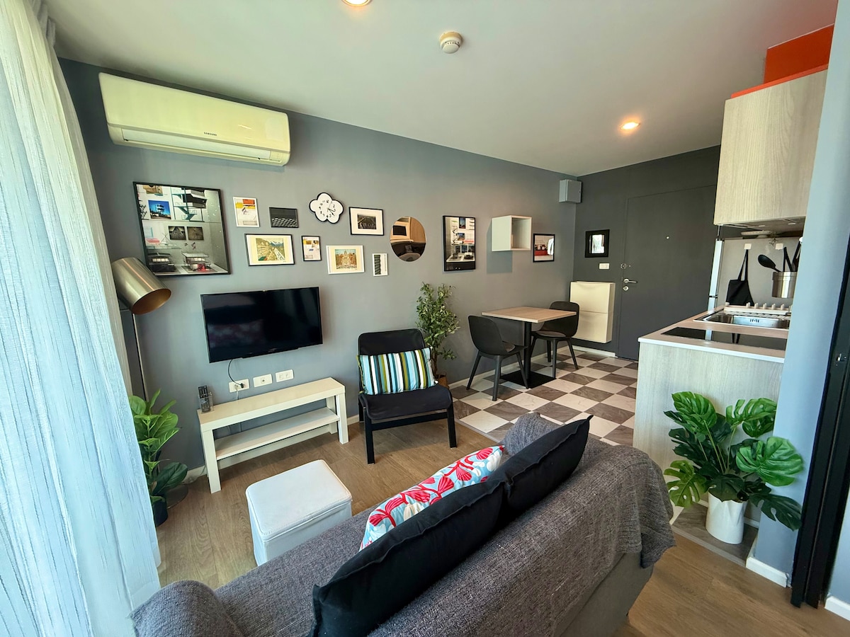 Enjoy a stylish/hi-ended experience at this centrally-located studio of 28sqm with private WIFI in the apartment. It is located behind the Phuket Central Festival. This condo is equipped with Queen size bed/Kitchen/balcony/ washer/55" Smart TV/Full Kitchen with Stove/Hood/utensils. There are big swimming pool/Jaguzzi/GYM and co-working loung with free WIFI in public area/lobby. Very easy to travel from here to beaches/Phuket town/AIRPORT with main bus stop at Central Festival. Easy for shopping.