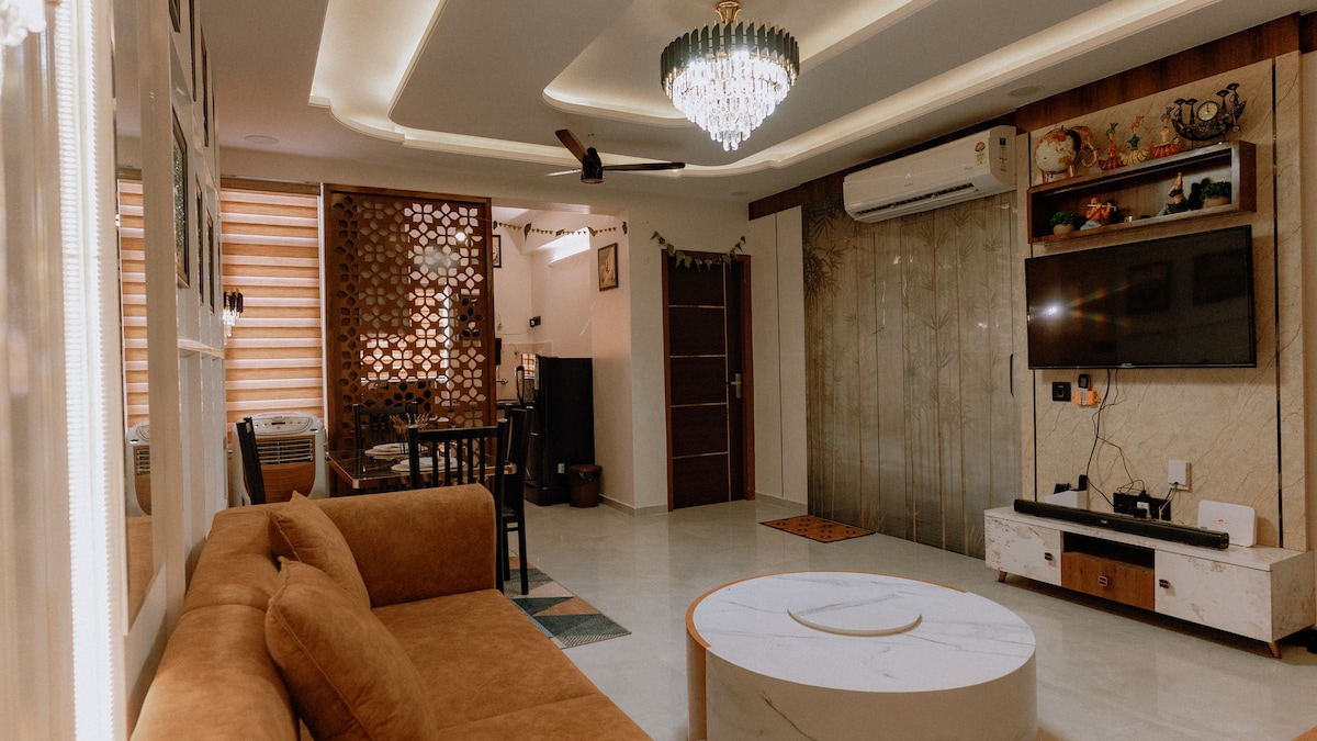 Our place is located in the heart of Vaishali Nagar area. It's pretty close to main ajmer road bypass and vaishali nagar is a prime location for your daily commute in and around the Pink city, serene setup with all modern amenities. It's spacious 3bhk with 2 washrooms. one common and one attached with Master bedroom. Hospital, dry cleaning, wash:iron, Night club -rosado, PVR , Petrol pump Amenities included are- Daily Cleaning High Speed wifi 75 inch SONY OLED TV for a mini theatre exp