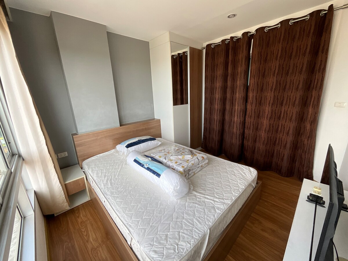 This townhome is just 3-5 minutes from Surat Thani Airport by car. and about 20 minutes to a train station and 30 minutes to Bus station. A spacious bedroom with private bathroom and office desk which you can do some work. Having two Storeys. at the first floor, We provide a kitchen room which you can cook any food and the other utensils such as Refrigerator, Microwave, knives, cooking pots etc.