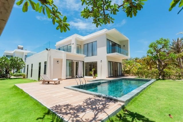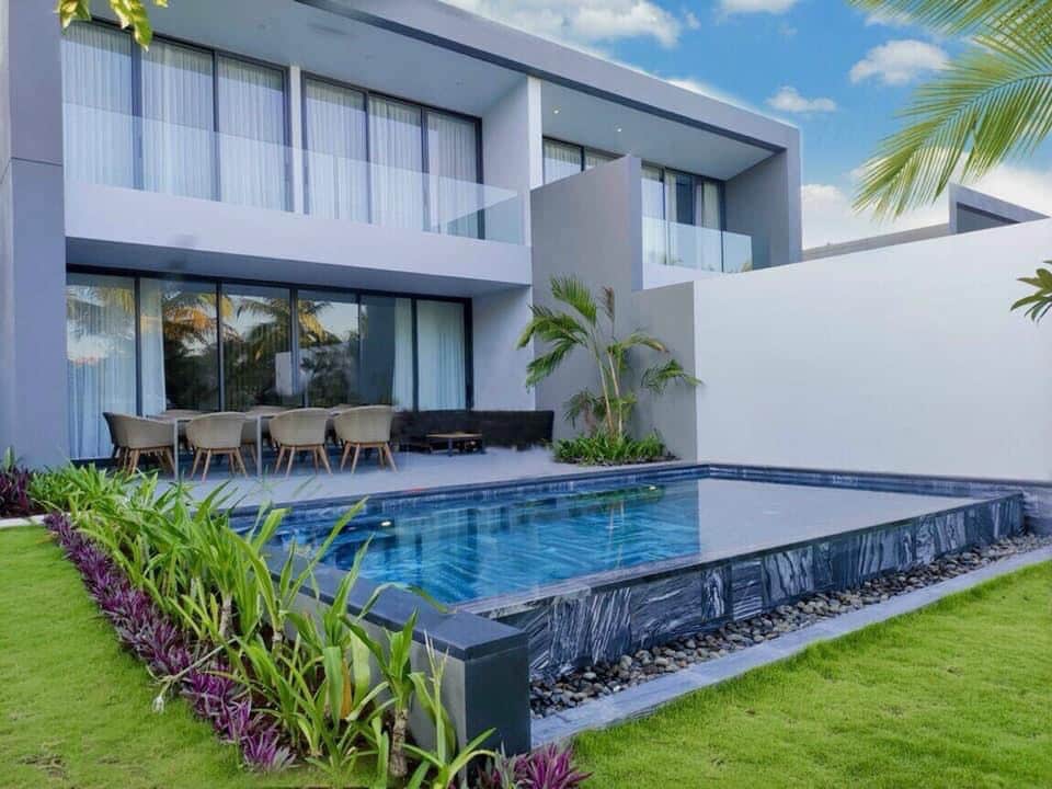 This is 𝐕𝐄𝐑𝐘 𝐍𝐄𝐖 (2022) 4 double Bedrooms Riverfront private pool Villa at Sanctuary Ho Tram Beach Resort -Villa has 4BR queen (1.8m x 2m) with en-suite bathroom - Kitchen is fully equipped, BBQ grill is available in the villa. Cooking and BBQ activities are allowed in the villa - The restaurant is available in the resort -Accommodation 9 adults + 4 children under 12y.o. Surcharge for extra people will be applied: 1mil vnd/extra adult without extra bed and 500,000vnd/child under 12 Y.O