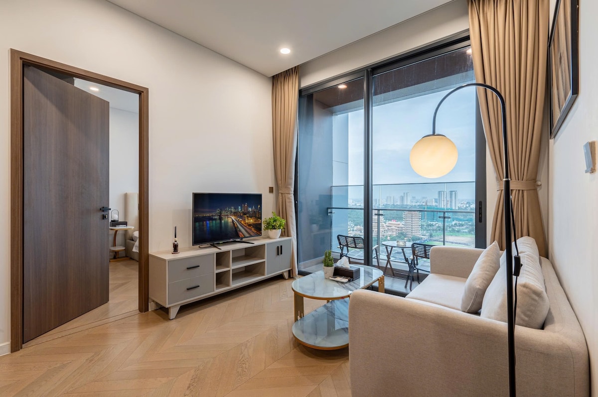 🌅 Wake up to soft morning light and lush garden views from your private balcony at Diamond Island, one of Saigon’s most peaceful and luxurious residences. With elegant décor, warm lighting, and a cozy chic ambiance, this home brings a perfect sense of calm — your quiet oasis amid the city’s vibrance. Whether you’re here for work or relaxation, every detail is thoughtfully prepared for your comfort: premium linens, a Netflix-ready Smart TV, and a fully equipped kitchen for your favorite meals.