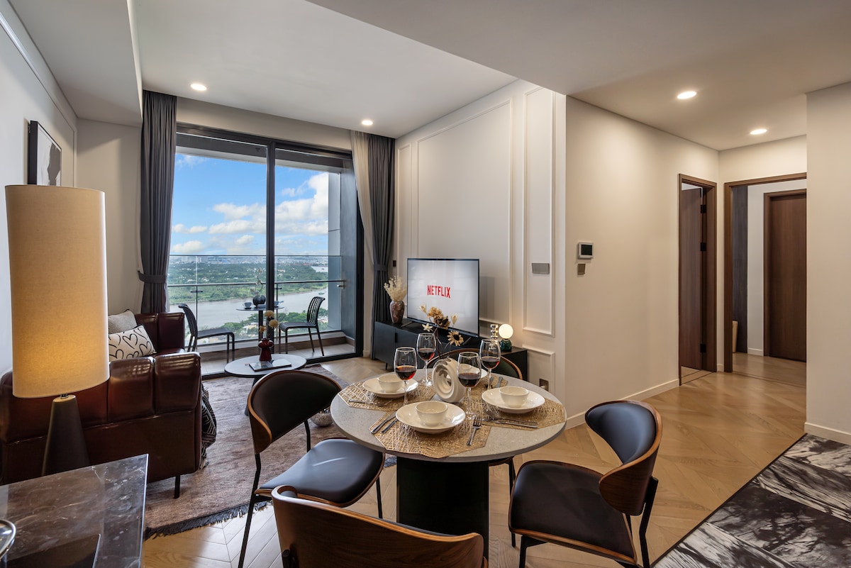 Welcome to TrueStay @ Lumiere Riverside ✨ Stylish 2BR apartment with stunning river view, ideal for families or groups. Features bright living room, full kitchen, private balcony & modern design. Guests enjoy infinity pool, gym & gardens. In vibrant Thảo Điền—steps to cafés, dining & 10 mins downtown Saigon. ✨ If this unit is unavailable, please check our profile for more than over 100 TrueStay homes/units/villas around Saigon