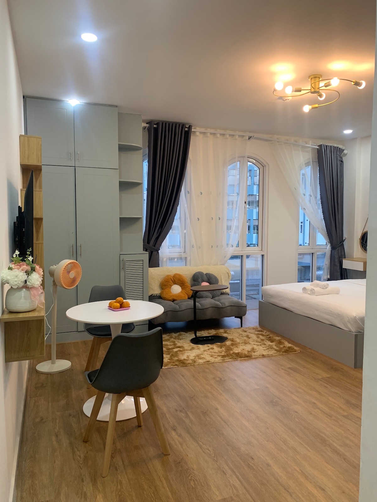 Established in 2023, We offer High Quality Short and Long Let Serviced Apartments located right on a busy street with famous cafes, restaurants, Circle K and convenient stores near by and just a few minutes walk to Bui Vien walking street, Tao Dan Park. Cost-effective compared to hotels, we provide 1 BR serviced apartments with privacy, modern style, kitchen, balcony, soundproof door & windows, desk space to work, rooftop garden, elevator, regular cleaning and the comforts of a “Home-from-Home”.