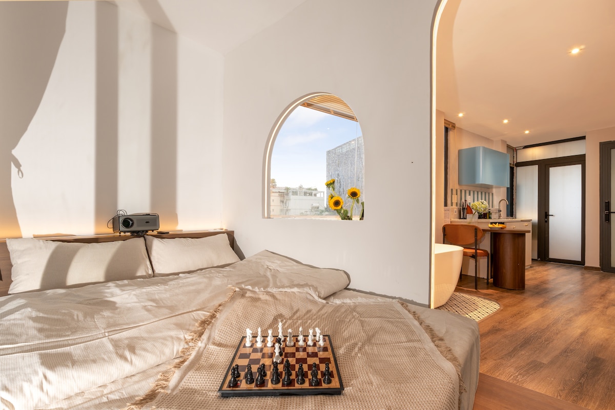 Tôi có 5 căn hộ ở tòa nhà này với diện tích 40m2 mỗi phòng, có nhiều ánh sáng và yên tĩnh. Đây sẽ là sự lựa chọn tuyệt vời nếu khách muốn có một chuyến công tác/hẹn hò/đổi gió với một căn phòng có phong cách thiết kế xinh đẹp và độc đáo! + Vị trí tuyệt đẹp. + Diện tích rộng + Thiết kế hút mắt, nhiều ánh sáng, nhiều công năng. + Hỗ trợ check in/out theo nhu cầu của khách!