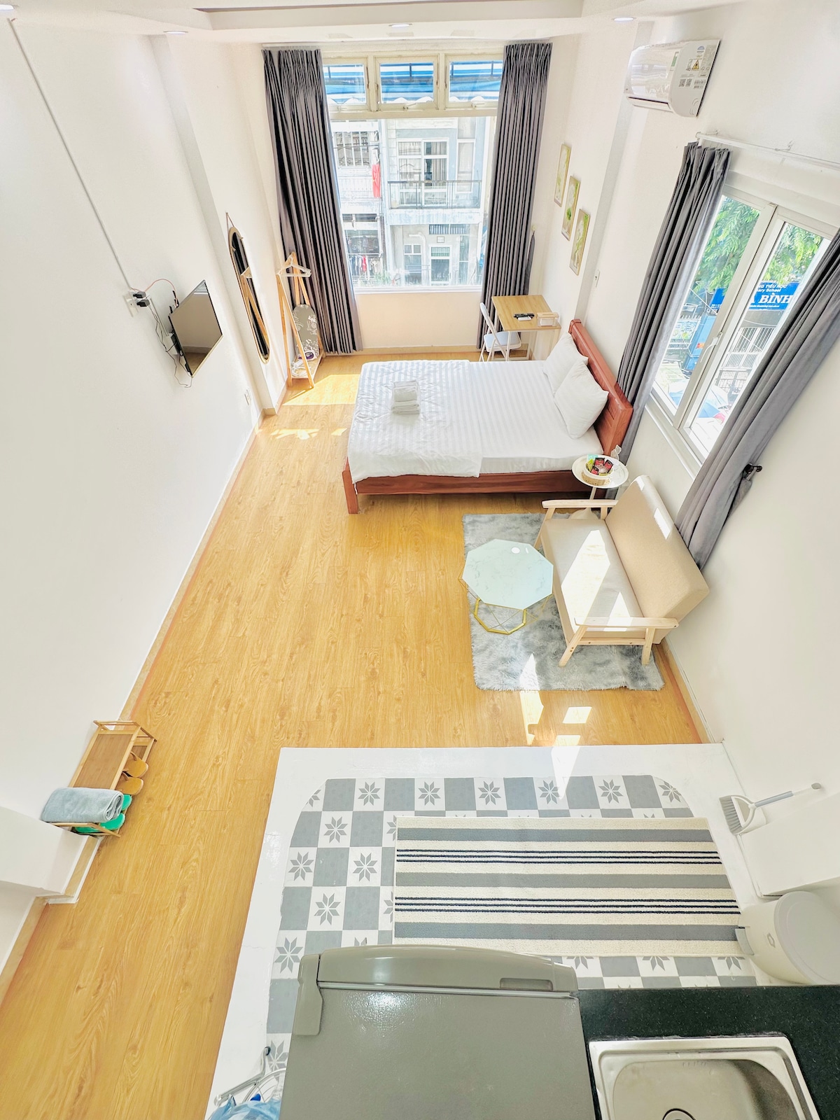 Established in 2023, We offer High Quality Short and Long Let Serviced Apartments located right on a busy street with famous cafes, restaurants, Circle K and convenient stores near by and just a few minutes walk to Bui Vien walking street, Tao Dan Park. Cost-effective compared to hotels, we provide 1 BR serviced apartments with privacy, modern style, kitchen, balcony, soundproof door & windows, desk space to work, rooftop garden, elevator, regular cleaning and the comforts of a “Home-from-Home”.