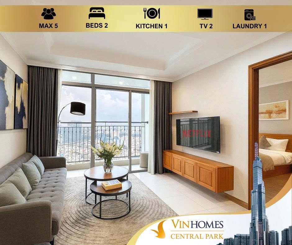 Chào bạn! cảm ơn bạn đã quan tâm tới dịch vụ lưu trú tại Căn hộ cao cấp của chúng tôi tại khu đô thị Vinhomes Central Park (VCP) 🇻🇳 Tổng quan: • 1 PHÒNG NGỦ, đầy đủ tiện nghi. • Tầng 34 tòa nhà LANDMARK 2 • 1 phút đi bộ đến tòa nhà LANDMARK 81. • 1 phút đi bộ đến trung tâm thương mại VINCOM. • 5 phút đi bộ đến công viên Vinhomes • 15 phút đi taxi tới chợ BÊN THÀNH. • 15 phút đi taxi tới trung tâm QUẬN 1.