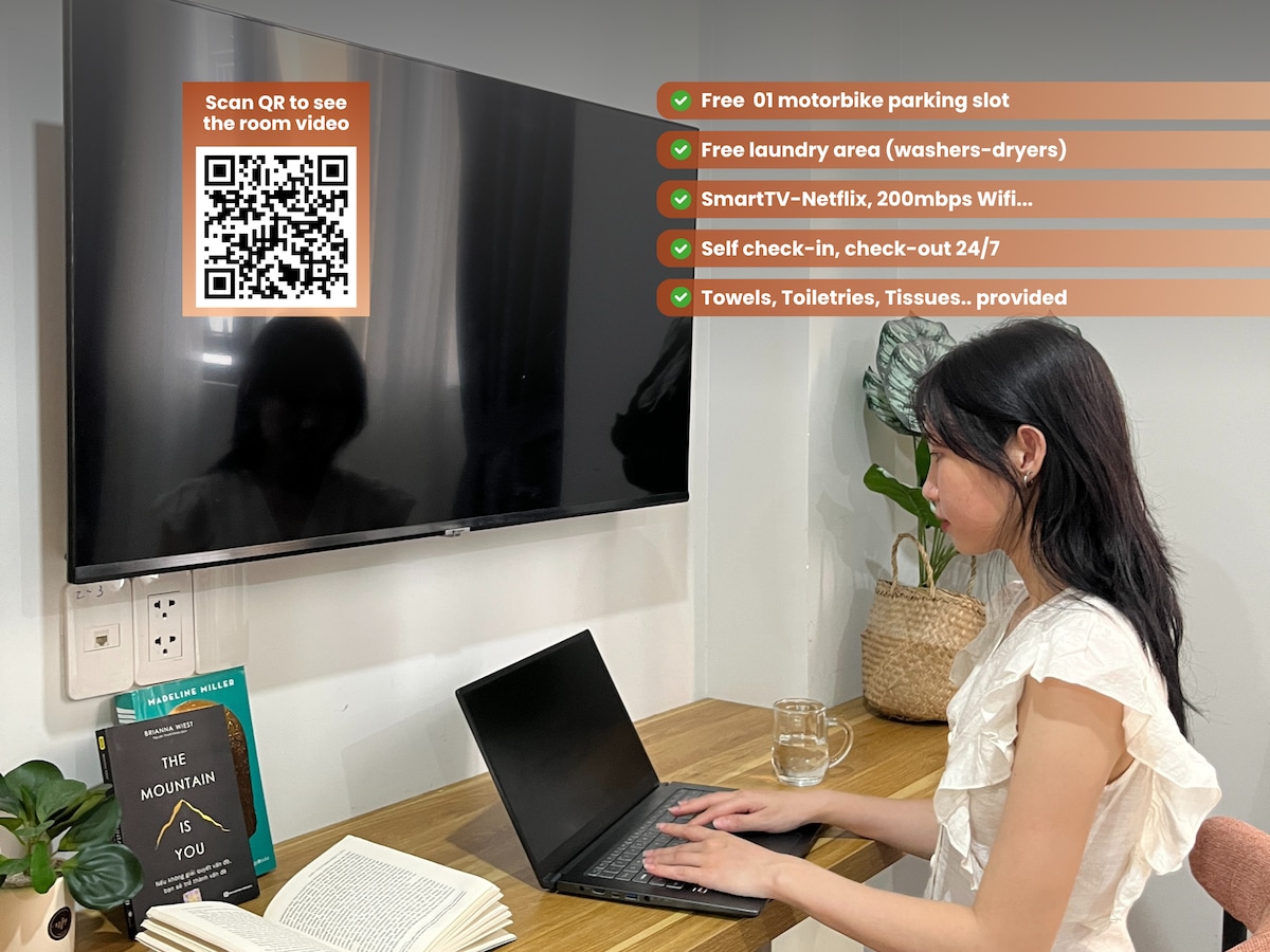 This is a small but cozy, modern studio, just 05 minutes from Tan Son Nhat Airport, located in a quiet, secure residential area. Fully equipped with air conditioning, a kitchenette, a workspace, and a large smart TV, it offers a peaceful stay. Enjoy flexible check-in/check-out with a private automated door system. Just 20 minutes by taxi to Nguyễn Huệ Walking Street and near local restaurants and Hoang Van Thu Park for morning exercise.