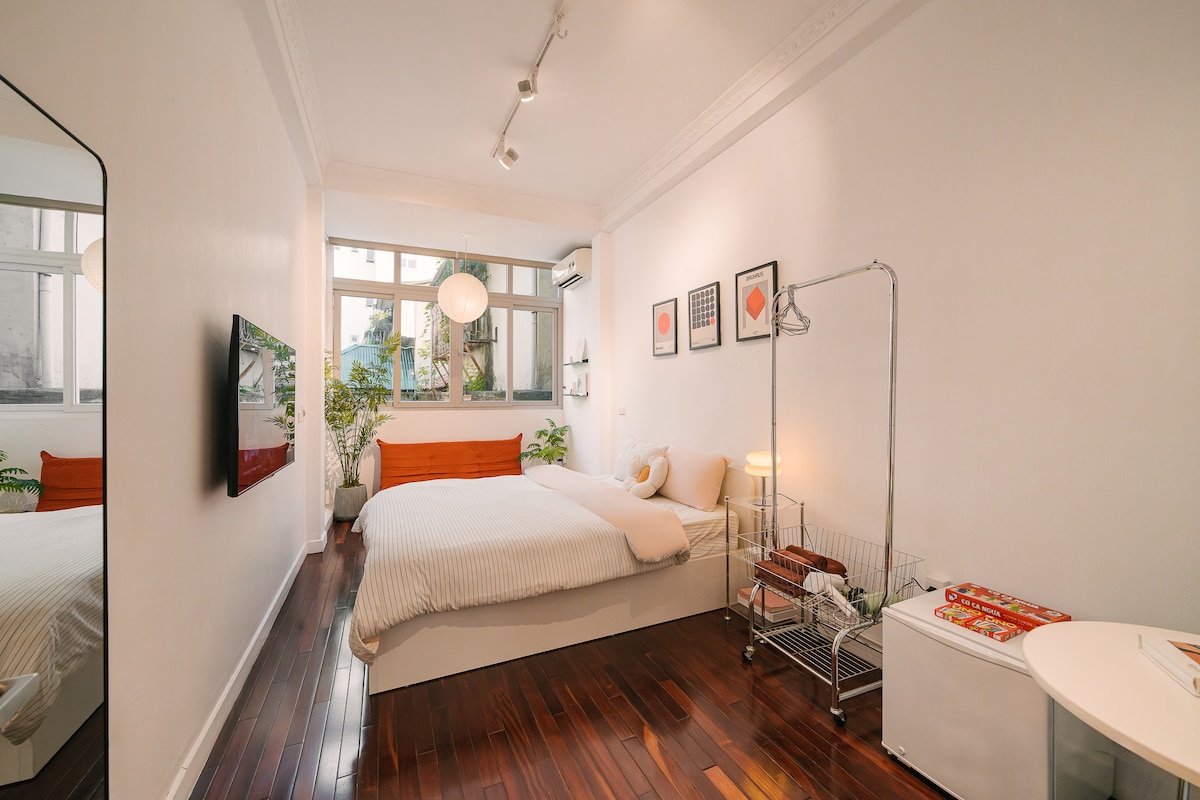 Japandi Comfort near Hoan Kiem Lake – Just a 5-minute walk from Hanoi’s iconic lake, this 40m² apartment blends Japanese minimalism with Scandinavian coziness. Enjoy a bright window with street views, a fully equipped kitchen, Netflix, and a washer-dryer. Surrounded by cafés, landmarks, and the charm of the Old Quarter, it’s the perfect retreat for travelers seeking style, comfort, and convenience.