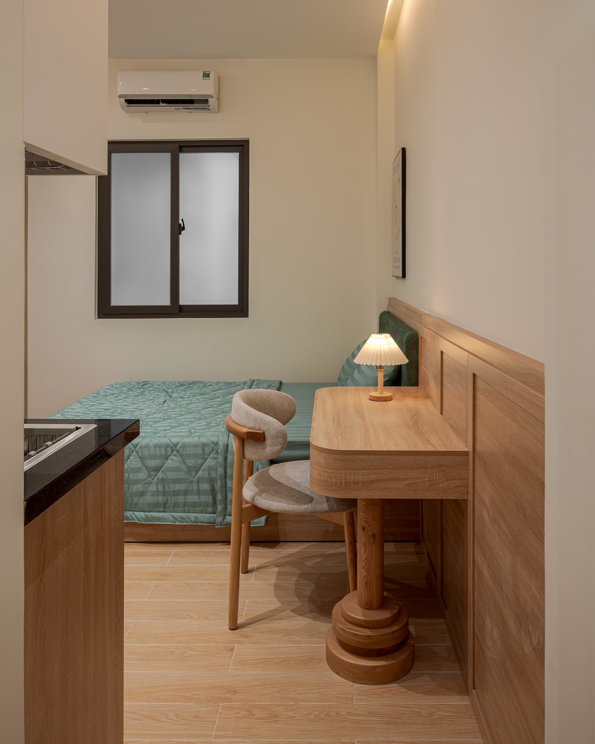 Established in 2023, We offer High Quality Short and Long Let Serviced Apartments located right on a busy street with famous cafes, restaurants, Circle K and convenient stores near by and just a few minutes walk to Bui Vien walking street, Tao Dan Park. Cost-effective compared to hotels, we provide 1 BR serviced apartments with privacy, modern style, kitchen, balcony, soundproof door & windows, desk space to work, rooftop garden, elevator, regular cleaning and the comforts of a “Home-from-Home”.