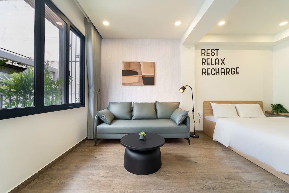Established in 2023, We offer High Quality Short and Long Let Serviced Apartments located right on a busy street with famous cafes, restaurants, Circle K and convenient stores near by and just a few minutes walk to Bui Vien walking street, Tao Dan Park. Cost-effective compared to hotels, we provide 1 BR serviced apartments with privacy, modern style, kitchen, balcony, soundproof door & windows, desk space to work, rooftop garden, elevator, regular cleaning and the comforts of a “Home-from-Home”.