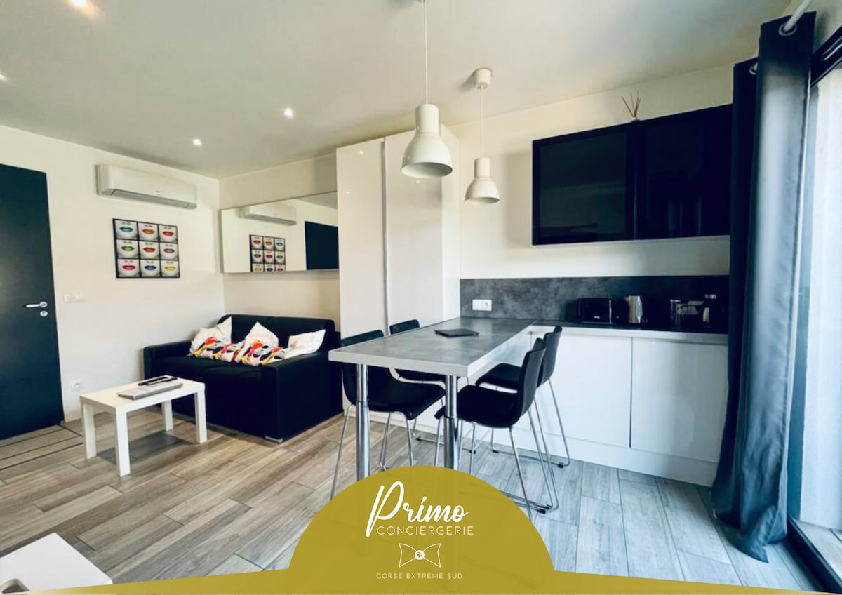🌟Bienvenue à la résidence Cala Di Pianottuli, l'appartement refait à neuf, est composé d'une pièce de vie, de 2 belles chambres avec une vue mer incroyable🤩, une salle d'eau avec WC, un deuxième WC indépendant, une buanderie et une terrasse couverte. Wifi, climatisation Vous bénéficiez d'une piscine à débordement avec un accès direct à la plage🏖️, cours de tennis, parking privé, etc... Toutes les prestations nécessaires pour passer des vacances en bord de mer et sillonner la Corse du Sud🌟