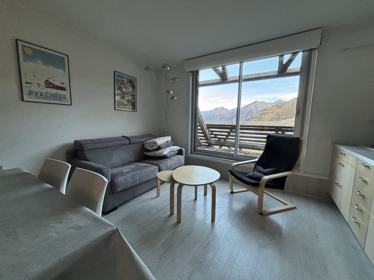 Situé dans la plus haute station des Pyrénées, cet appartement classé "meublé de tourisme 2*, de 37m2 pouvant accueillir 6 à 8 personnes, avec accès direct aux pistes et à 100m du cœur de la station, vous fera profiter d'un séjour unique à la montagne été comme hiver. Vue exceptionnelle sur la vallée d'Aure et sur le Pic du Piau. Ce logement est parfait pour des vacances en famille grâce à ses deux chambres séparées. -Accès Espagne à seulement 13km -Accès Massif du Néouvielle à 20km